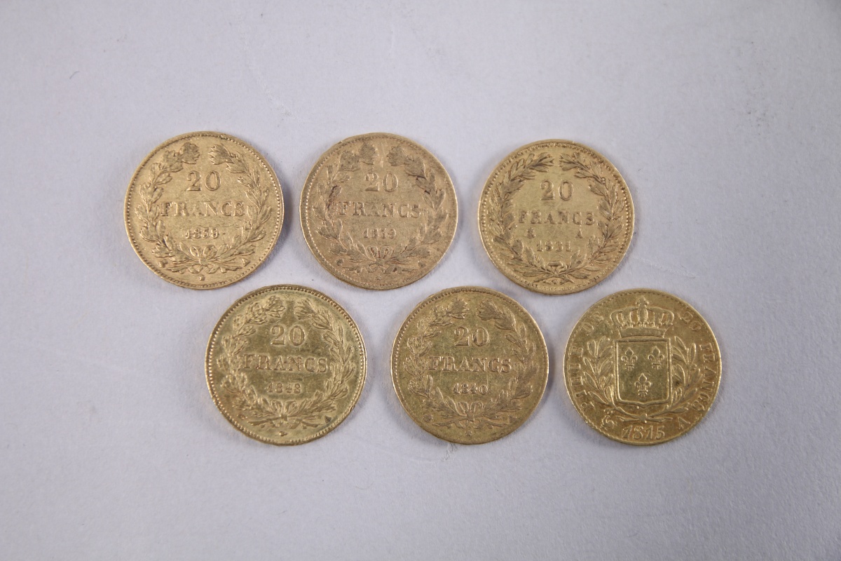 FRANCE. 20 FRANCS or, 6 pièces: Louis XVIII Paris 1815, Louis-Philippe 1831, 1839 (2), 1840, 1848.