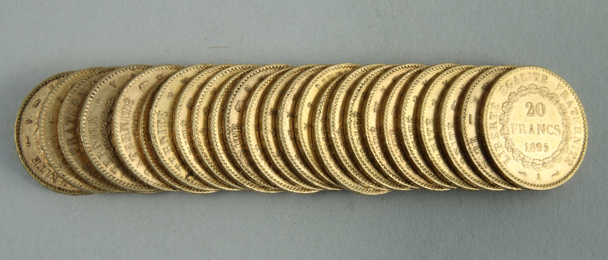 FRANCE. 20 FRANCS or, 26 pièces. Troisième République. Génie.
