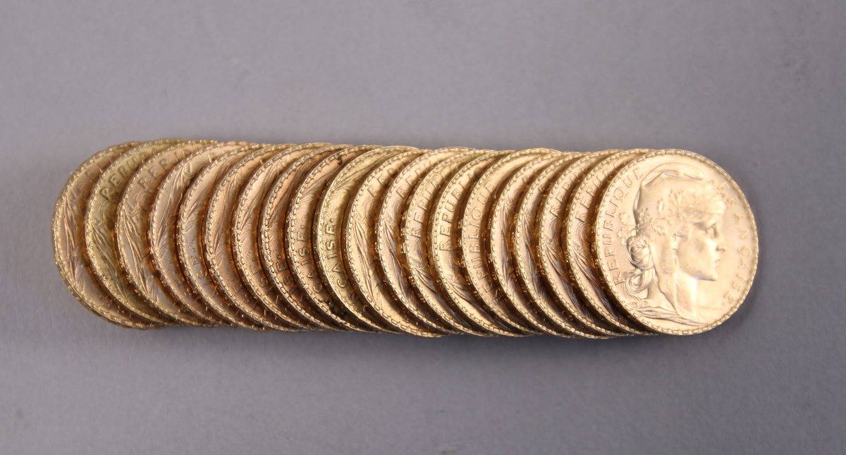 FRANCE. 20 FRANCS or, 20 pièces, Coq.