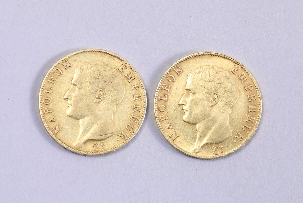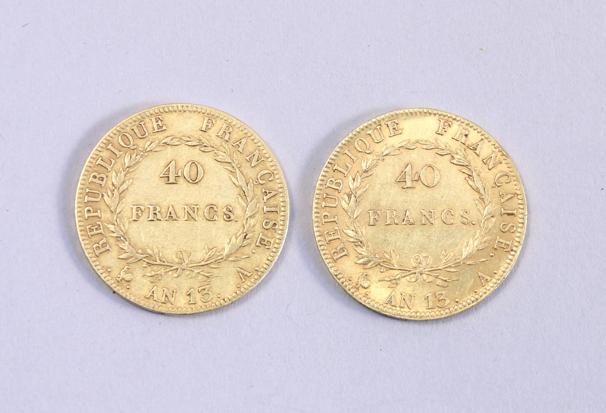 FRANCE. 40 FRANCS or, 2 pièces figurant Napoléon Ier tête nue (Paris, An 13).