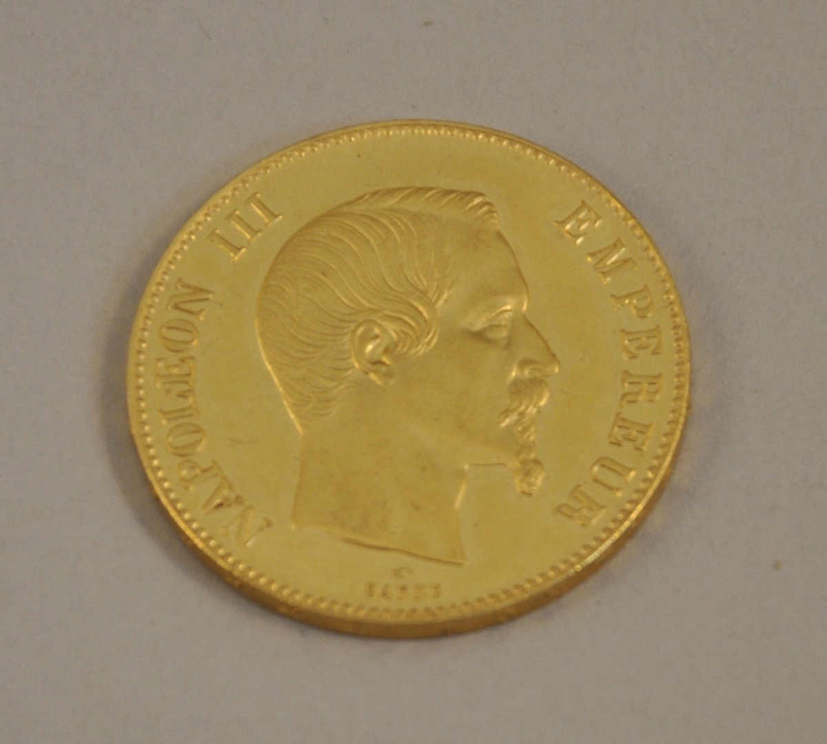 FRANCE. 100 FRANCS or, 1 pièce au profil de Napoléon III tête nue (1858, Paris).