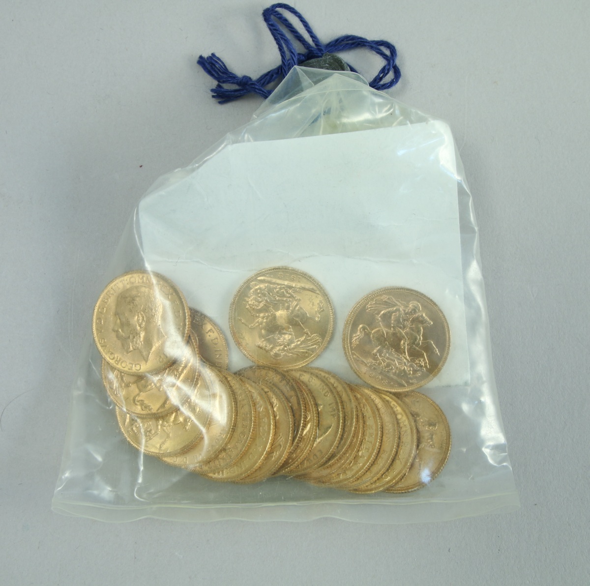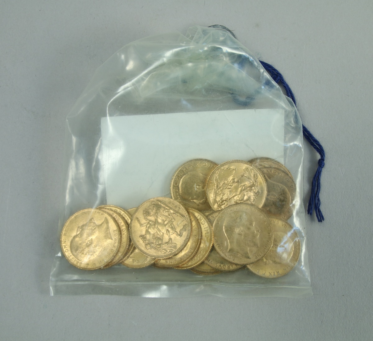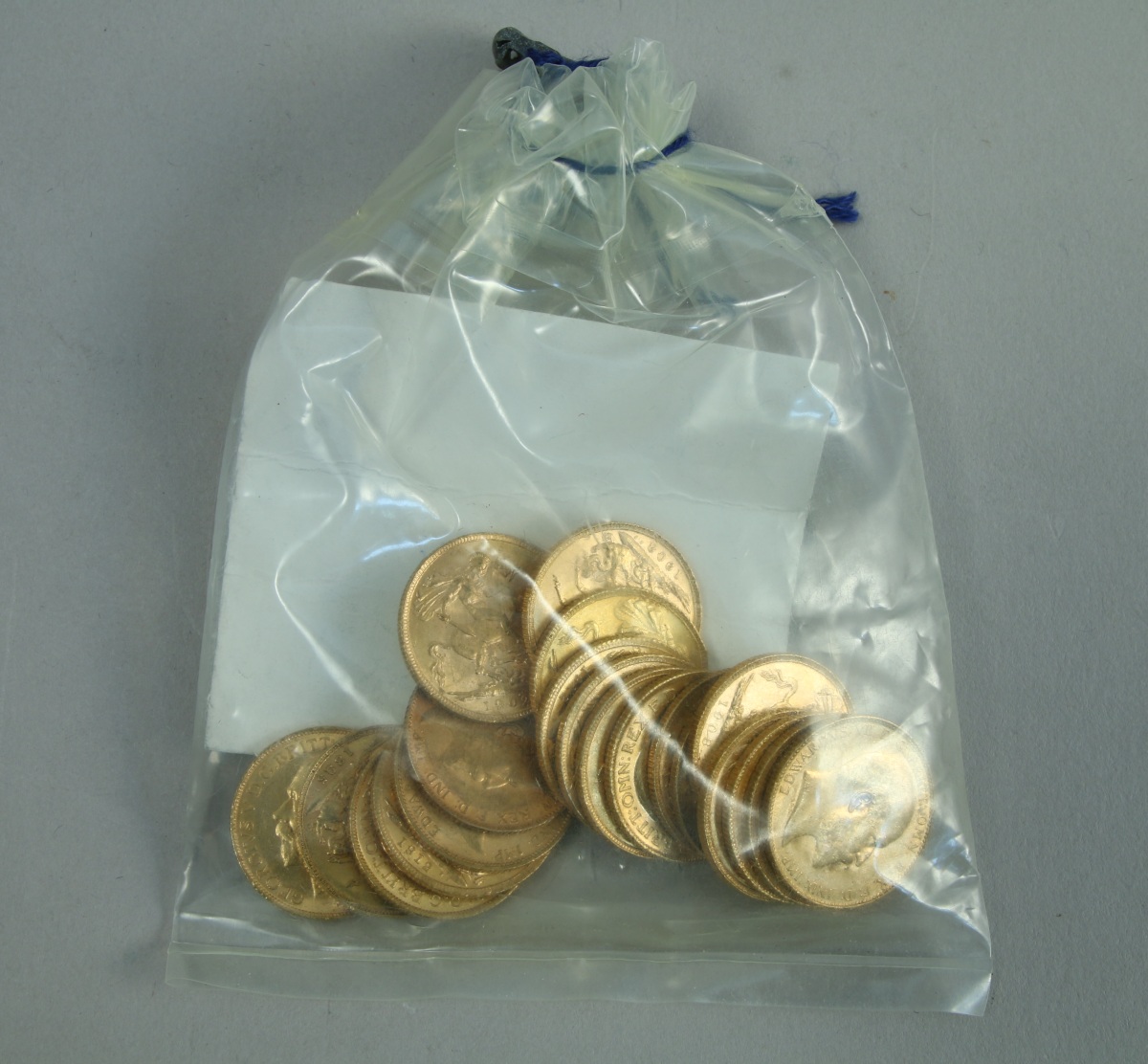GRANDE-BRETAGNE. 100 pièces SOUVERAIN or. Edouard VII, Georges V. (conditionnées sous sachets scellés).