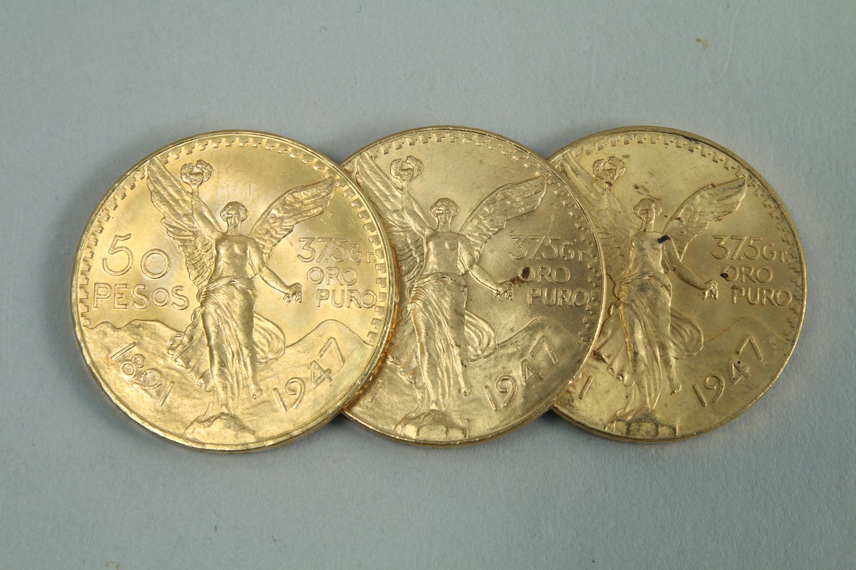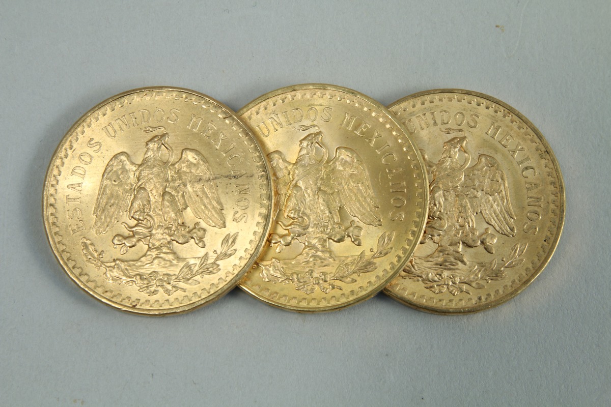 MEXIQUE. 3 pièces de 50 PESOS or. SUP.