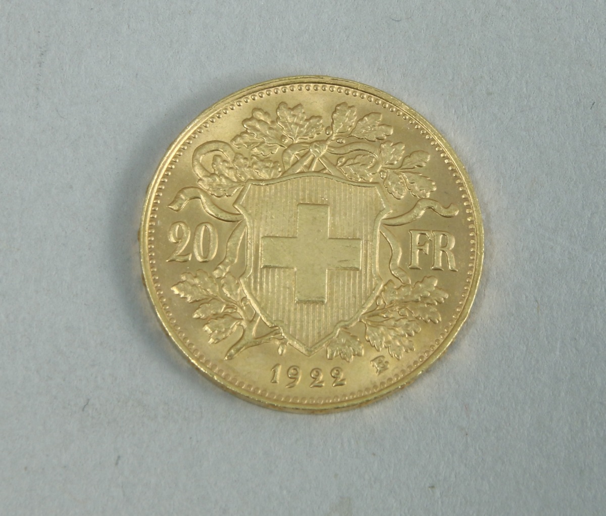 SUISSE. 1 pièce de 20 FRANCS or. 1922.