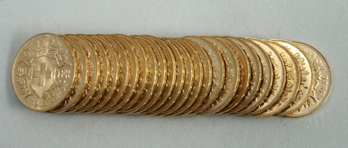 SUISSE. 25 pièces de 20 FRANCS or. SUP.