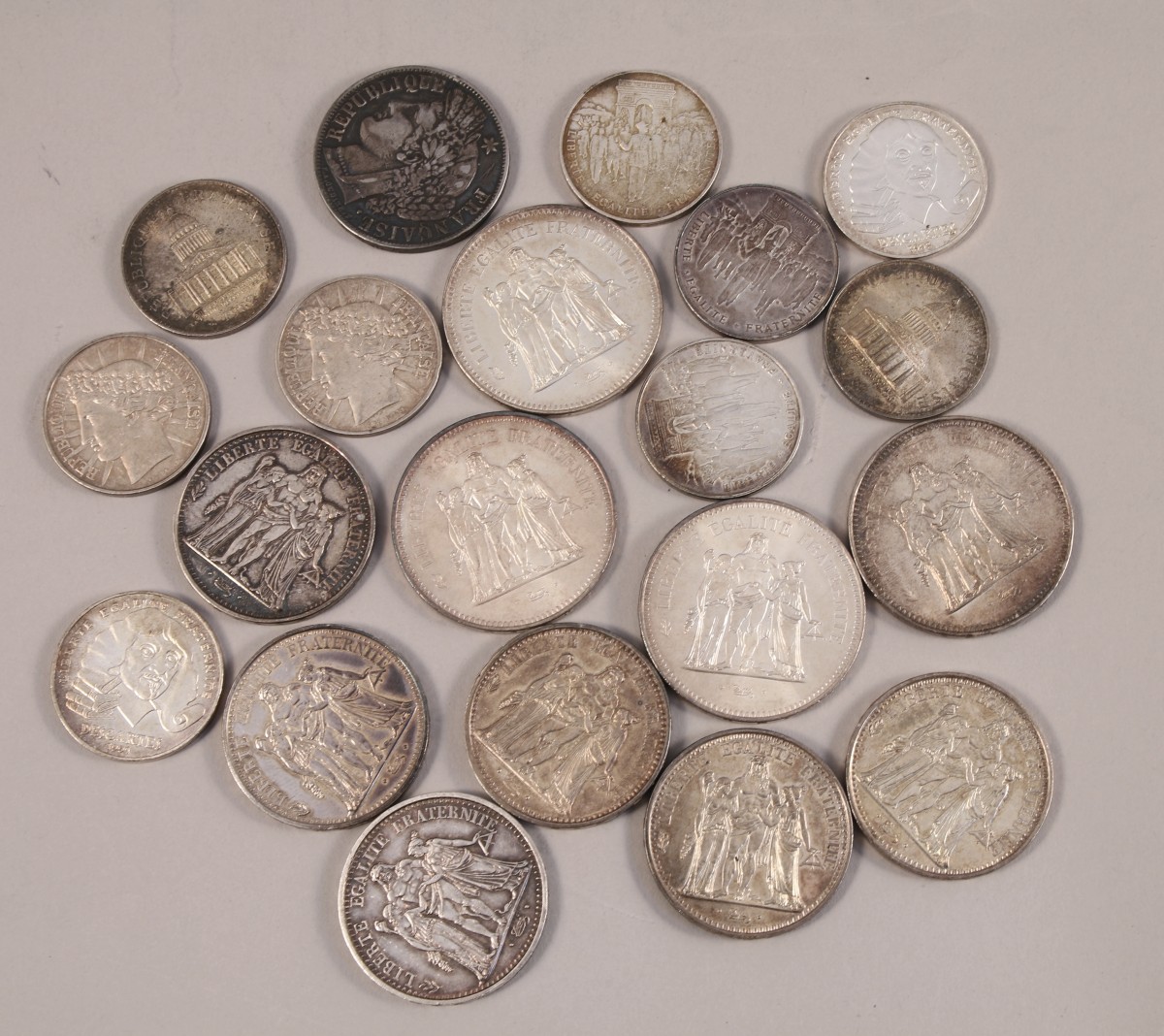 FRANCE. 20 monnaies argent: 5 F x 1 pièce 1851 ; 10 F x 6 pièces 1965 (2), 1967 (3), 1971 (1) ; 50 F x 4 pièces 1975 ; 100 F x 9. pièces.