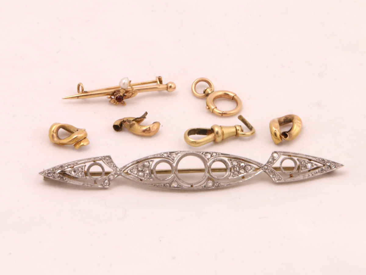 - BROCHE en or blanc anciennement sertie de diamants.
