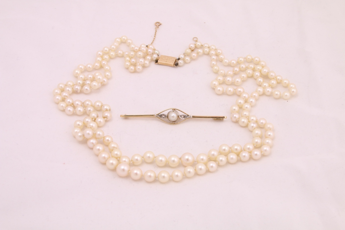 COLLIER deux rangs de quatre-vingt-sept et quatre-vingt-douze perles de culture en chute, le fermoir de forme rectangulaire en or jaune 18K.
