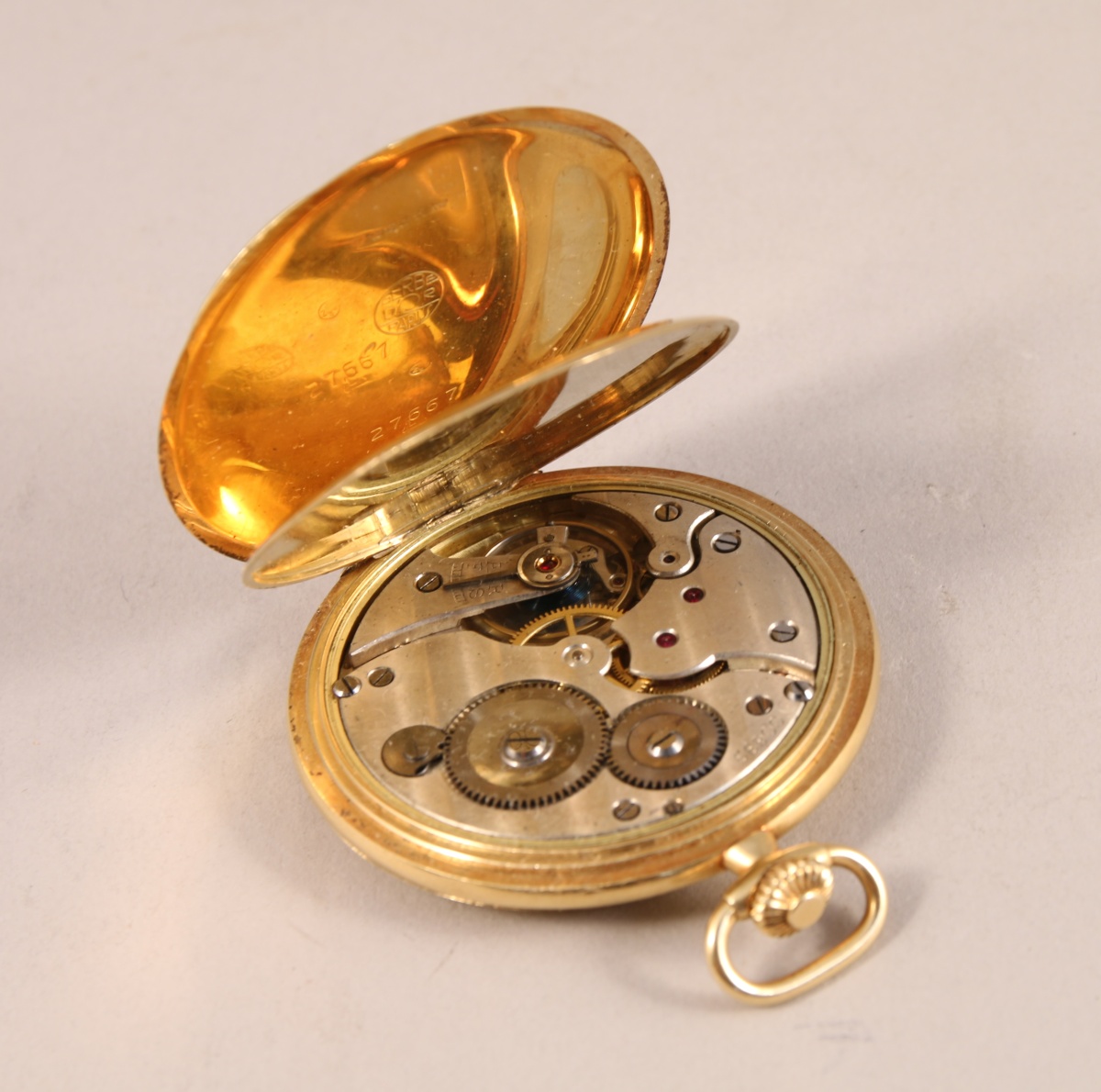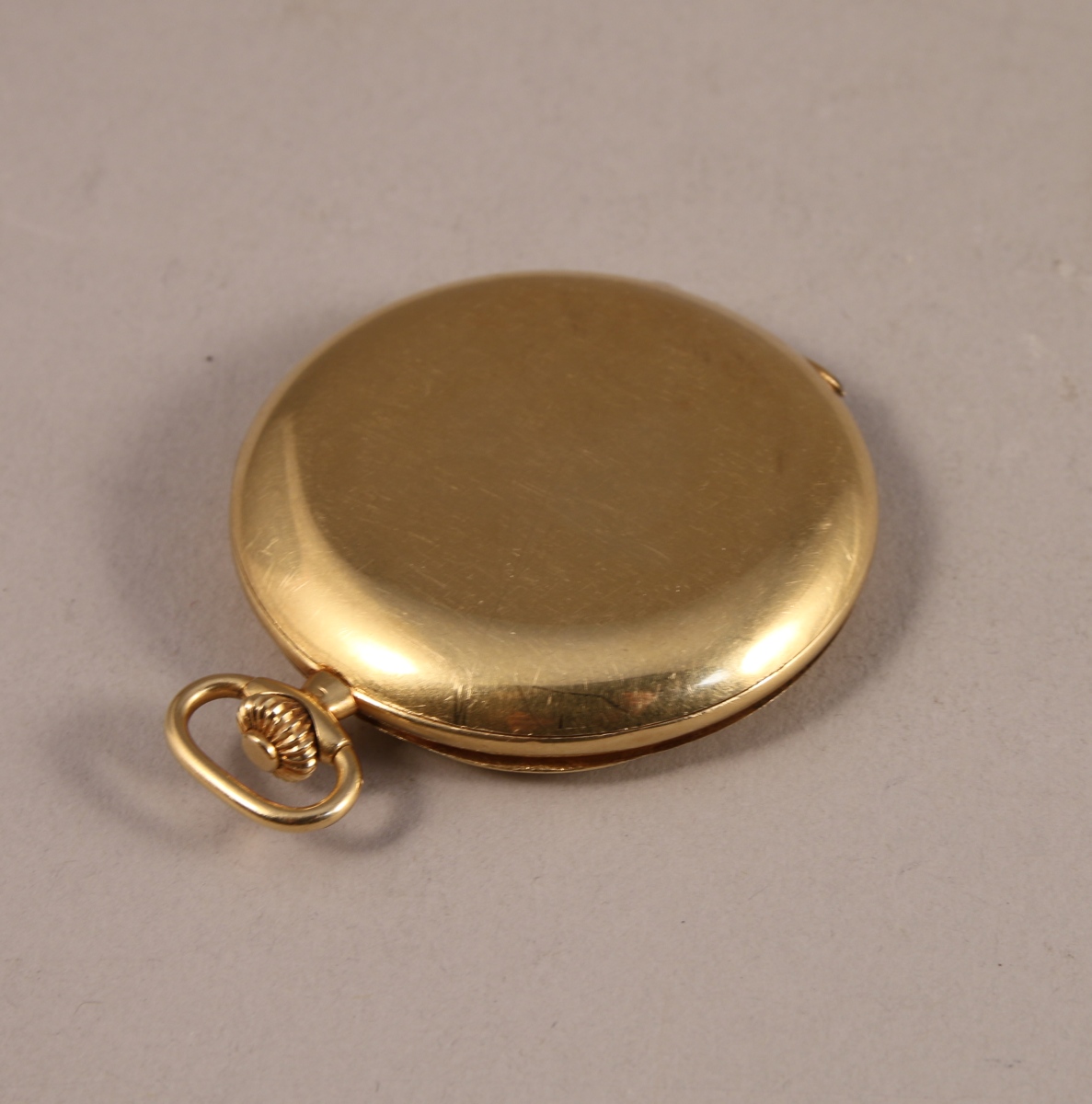 MONTRE savonnette d'homme en or jaune. Double cadran argenté signé Axa. "Importé de Suisse. Gerbe d'or à Paris". Diam. 5 cm. Poids brut 76 g.
