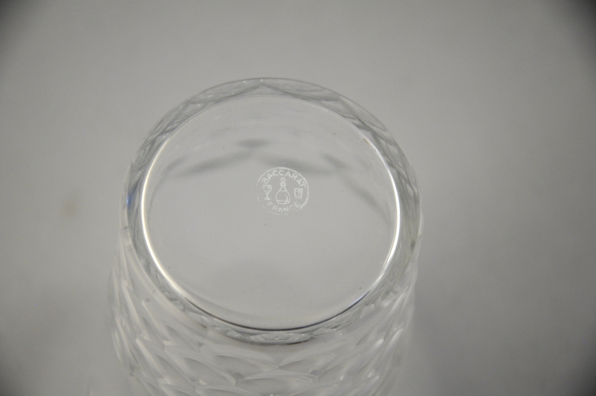 BACCARAT. SERVICE DE VERRES "CHAUNY", 63 pièces, en cristal taillé d'écailles et de filets: 9 choppes et 54 gobelets en 4 tailles (13 de 10,5 cm, 18 de 9,5 cm, 11 de 9 cm et 12 de 8 cm).
