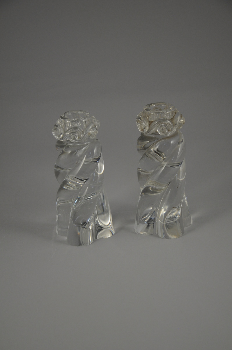 - 2 BOUGEOIRS à décor de godron torse. Haut. 16,5 cm.