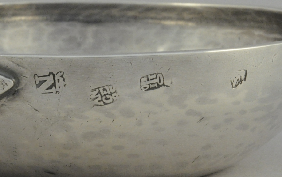 ANGERS. TASTEVIN en argent martelé. Anse serpentiforme.