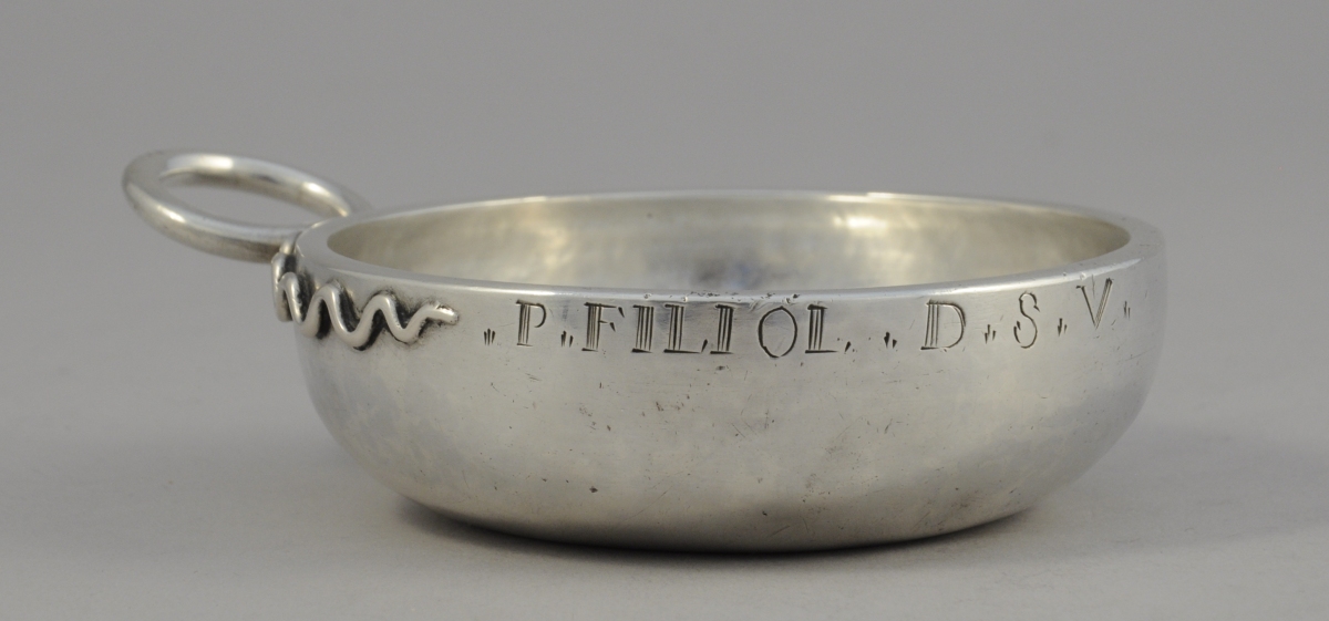 CLERMONT-FERRAND? TASTEVIN en argent uni marqué "P FILIOL D S V". Anse serpentiforme.