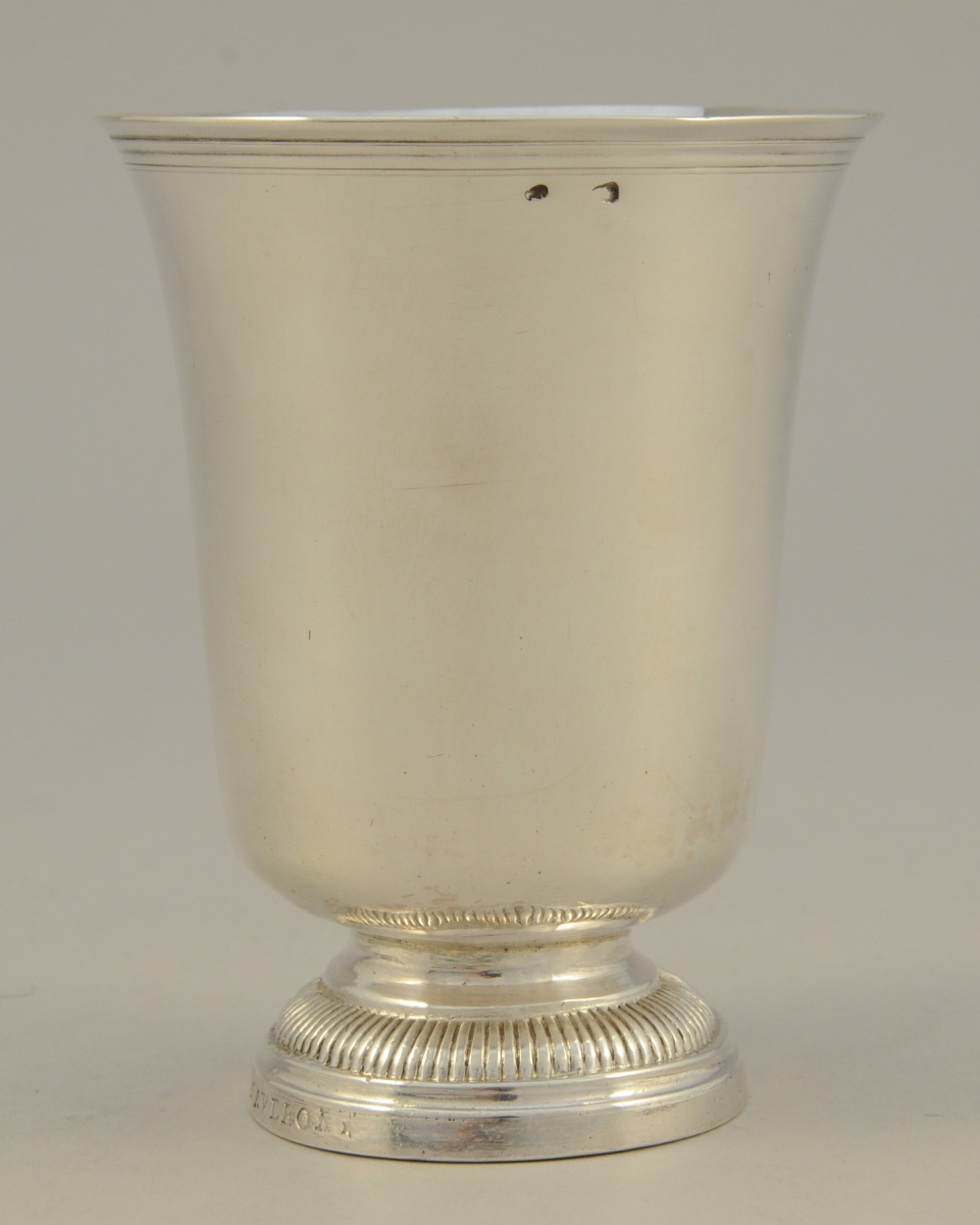 ORLÉANS. TIMBALE dite TULIPE en argent uni reposant sur un piédouche orné d'une frise de godrons. Le col souligné de filets. Le piédouche marqué "J * MAVLEON *".