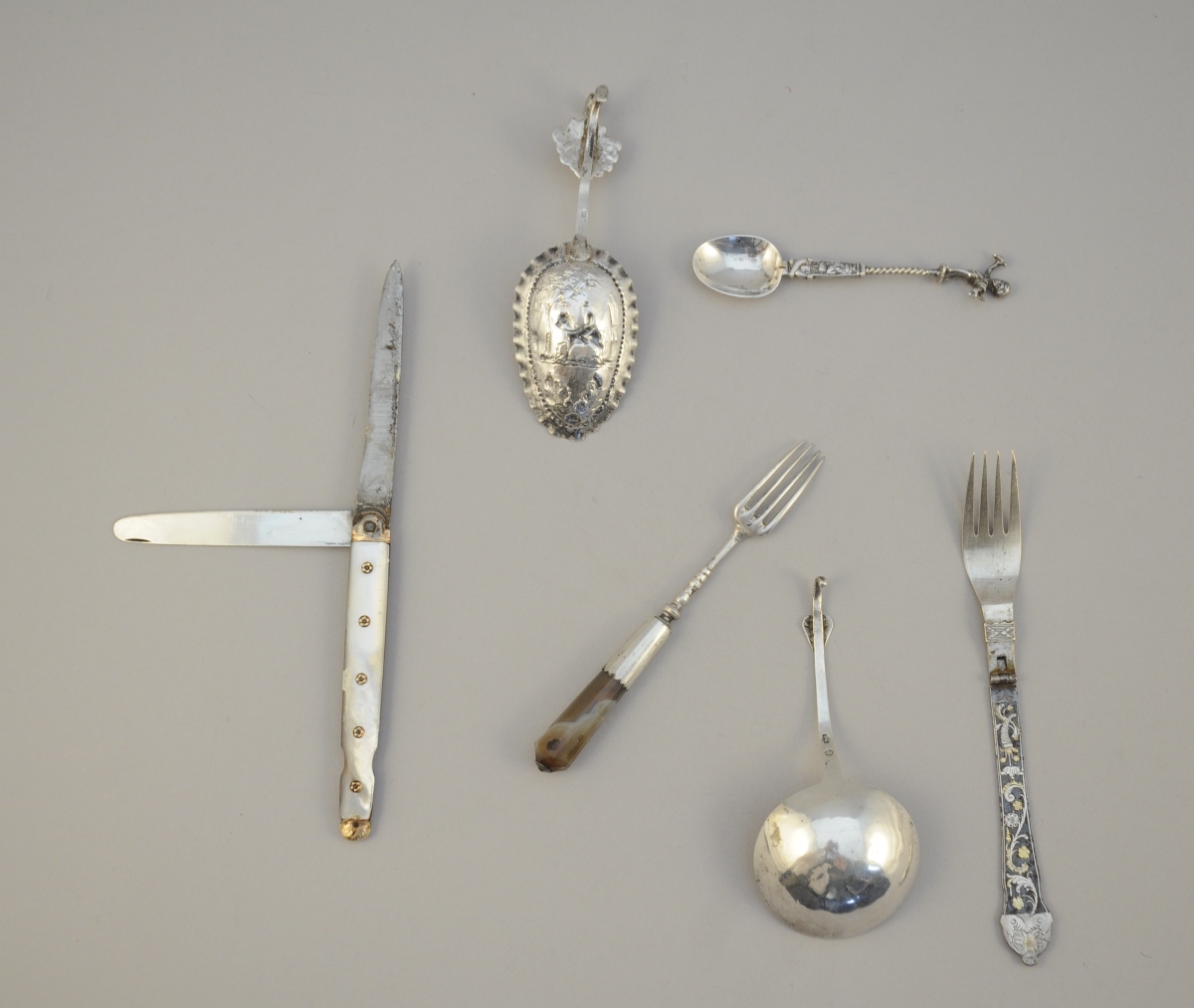 Long. 11. Long. Lames: 9,5 et 9 cm. Poids brut: 40 g. (petits manques, accidents, soudures à l'étain, en l'état)