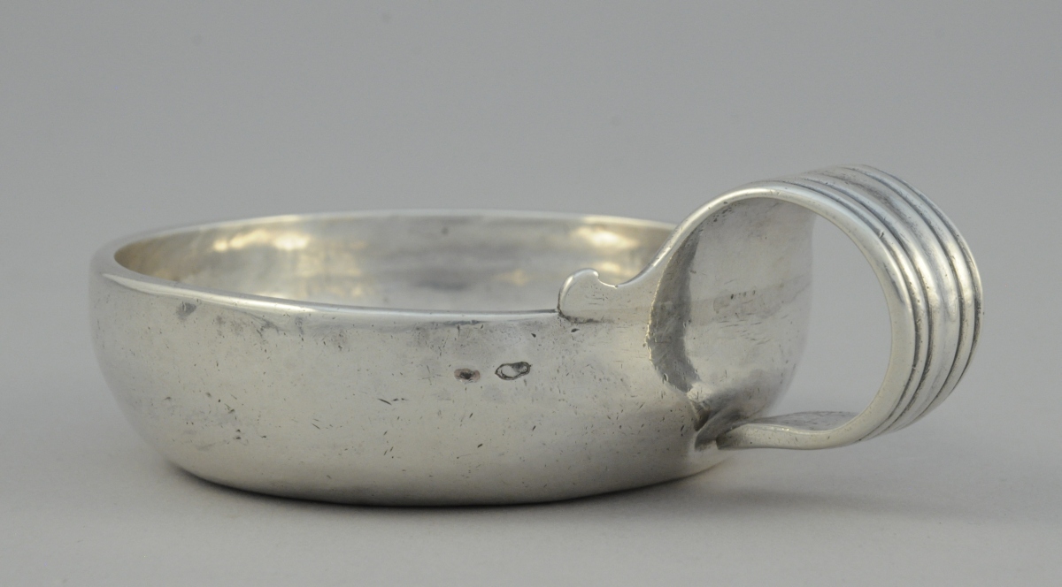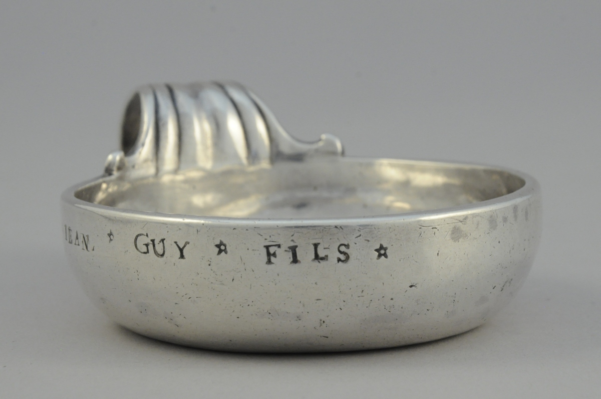 TOURS. TASTEVIN en argent uni marqué "IEAN * GUY * FILS *". Anse à enroulement cannelée.