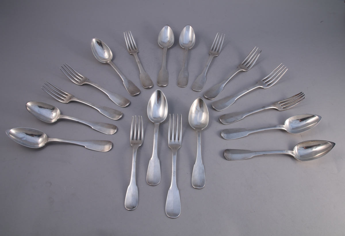 SEPT COUVERTS en argent, modèle uniplat.
