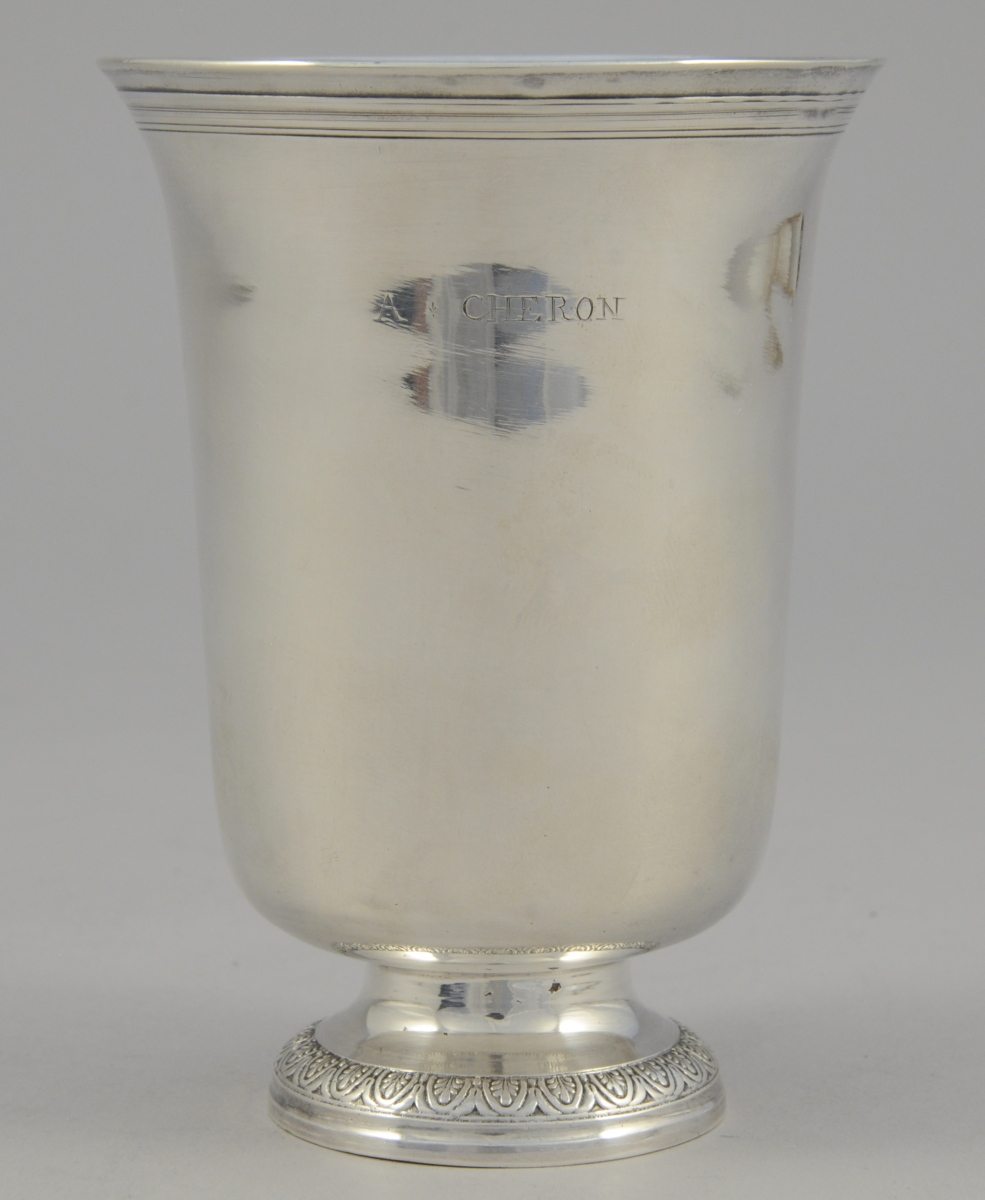 TIMBALE dite TULIPE en argent uni reposant sur un piédouche orné d'une frise de palmettes. Le col souligné de filets. Marquée "A . CHERON".