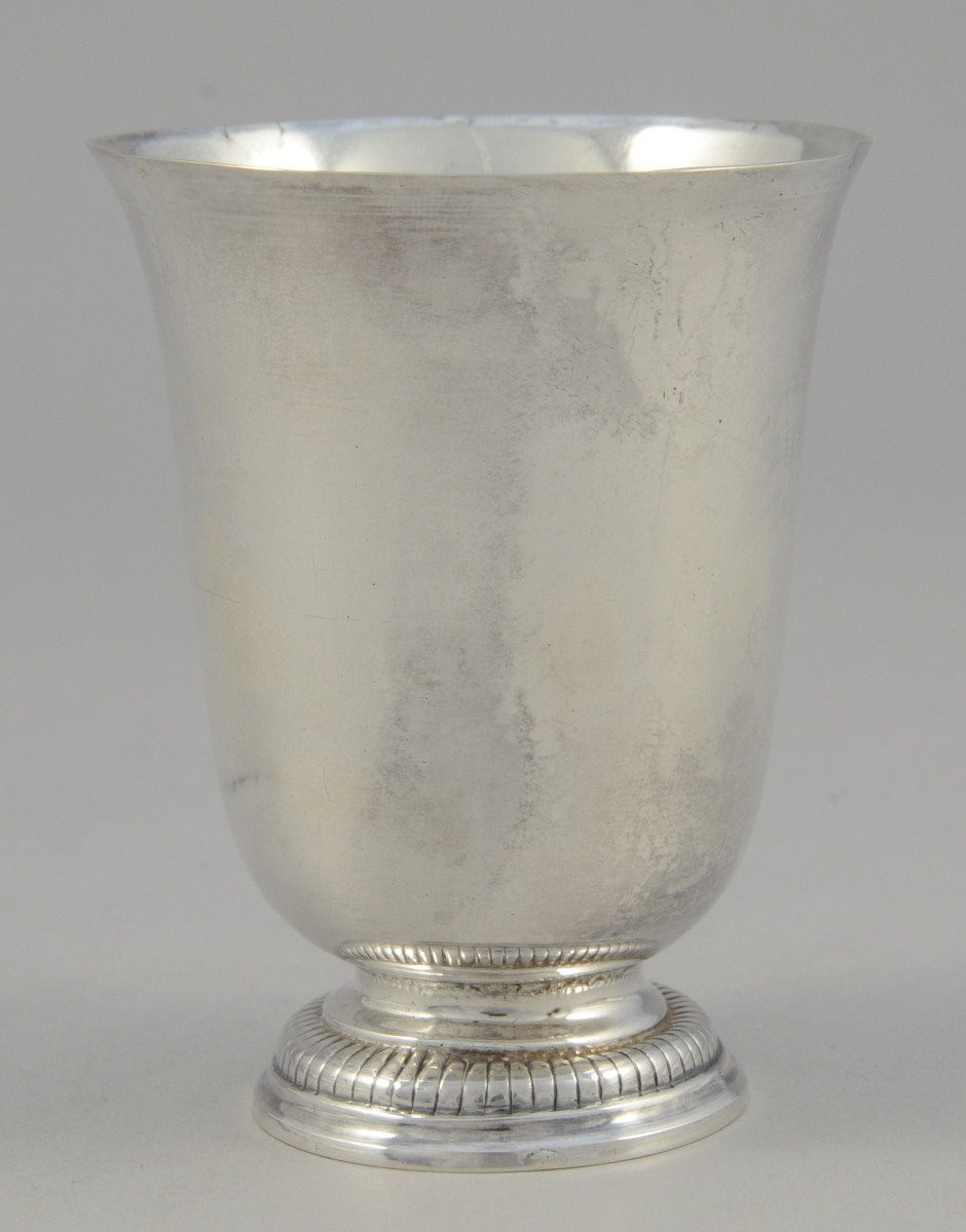 TIMBALE dite TULIPE en argent uni reposant sur un piédouche orné d'une frise de godrons.