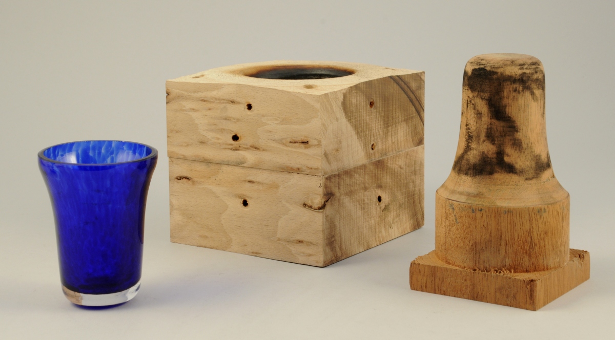 Avec moule et forme en bois nécessaires à la fabrication d'un godet.