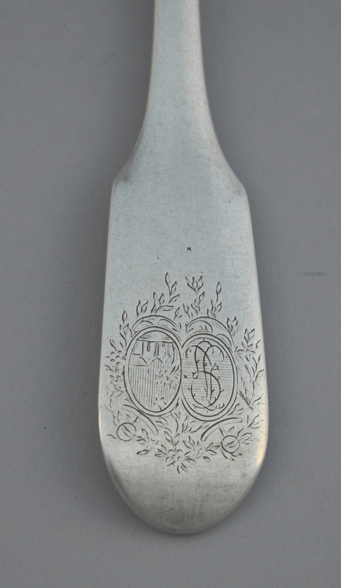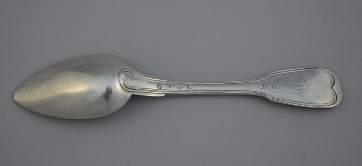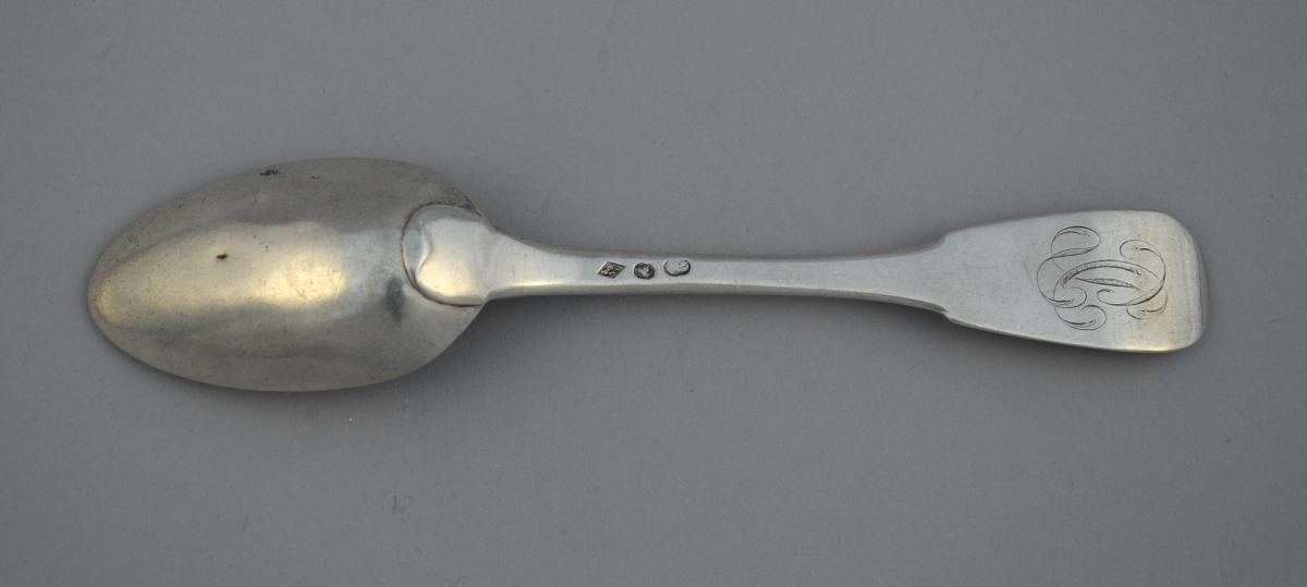- CUILLÈRE, modèle uniplat, monogramée "LC". Poinçon 1er Coq. Province, 1798-1809. Poids: 60 g.
