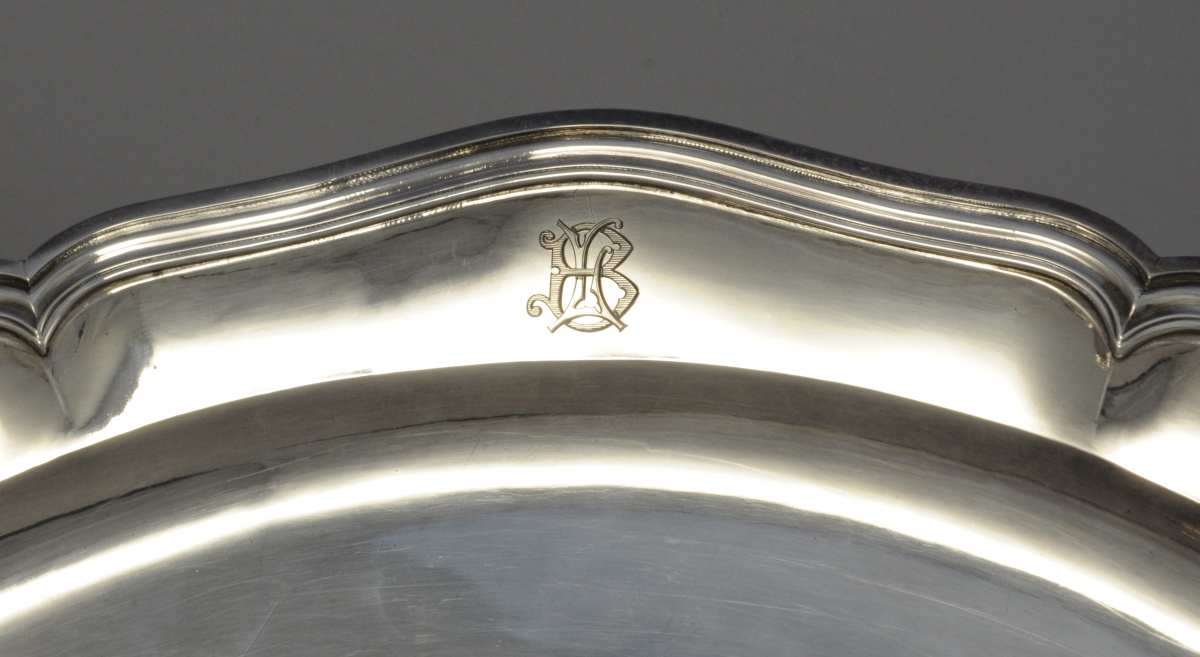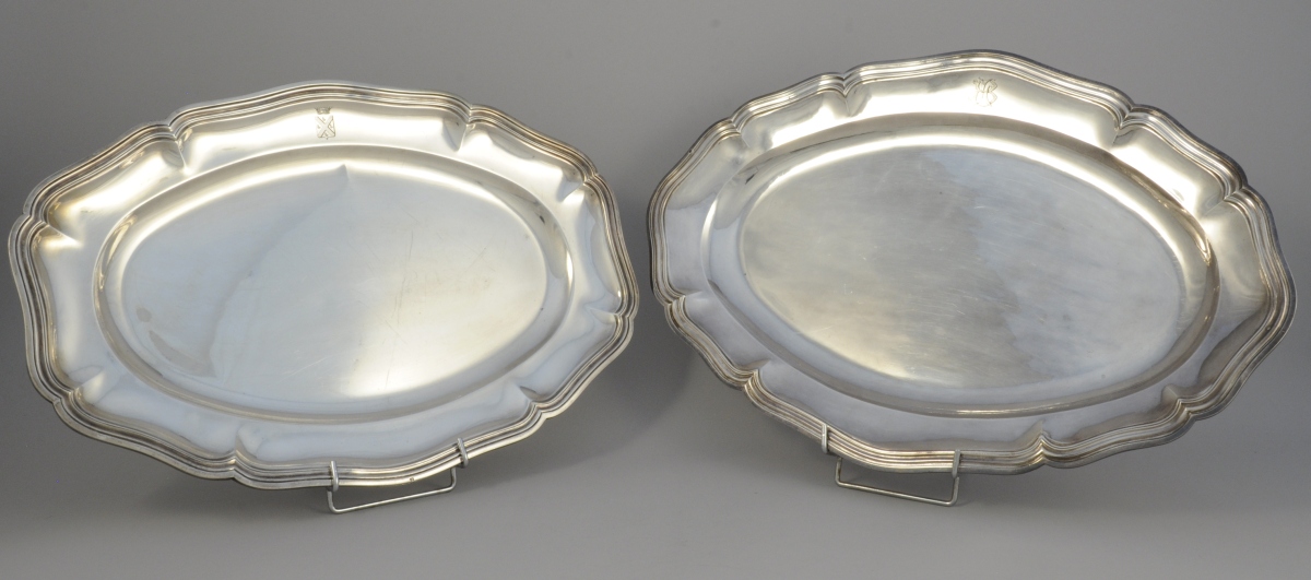 - Le premier par FROMENT-MEURICE. L'aile monogrammée "LB". Poinçon Minerve, XIXe. Long. 47,5, Larg. 32,5 cm. Poids:1 310 g.