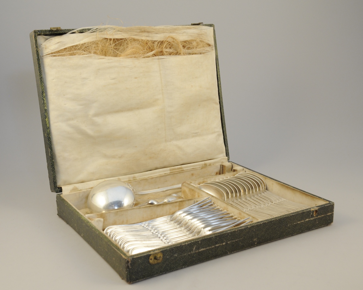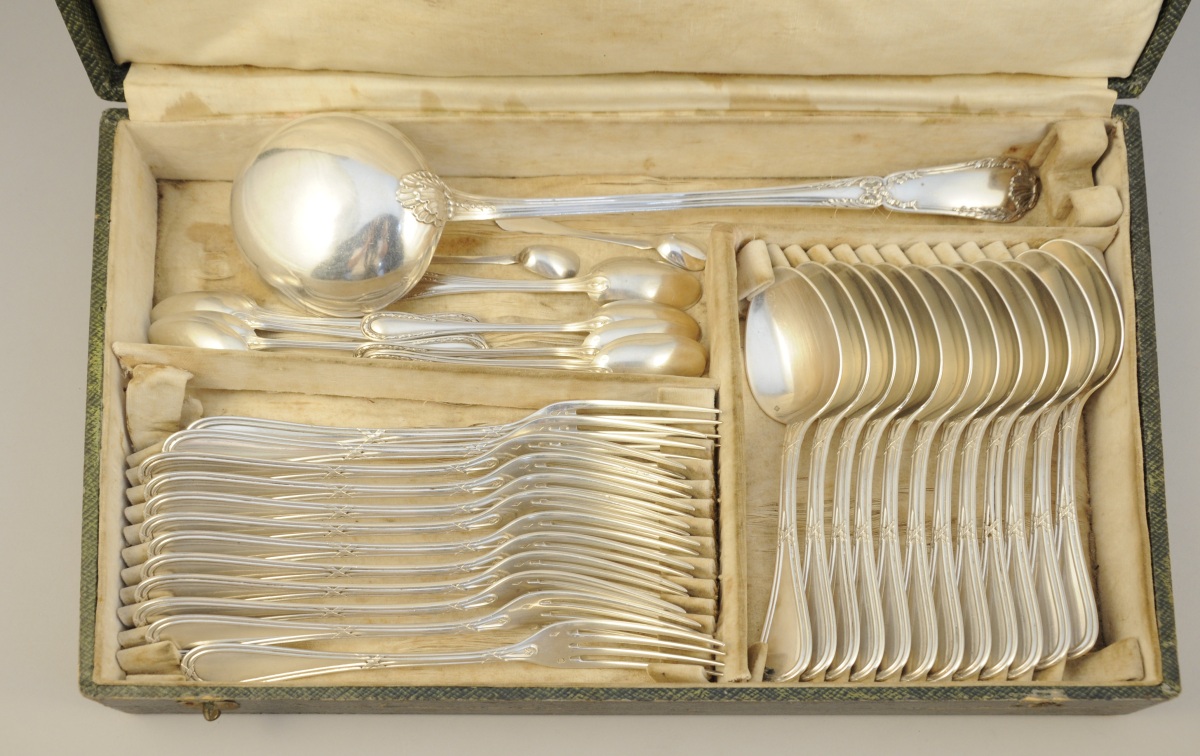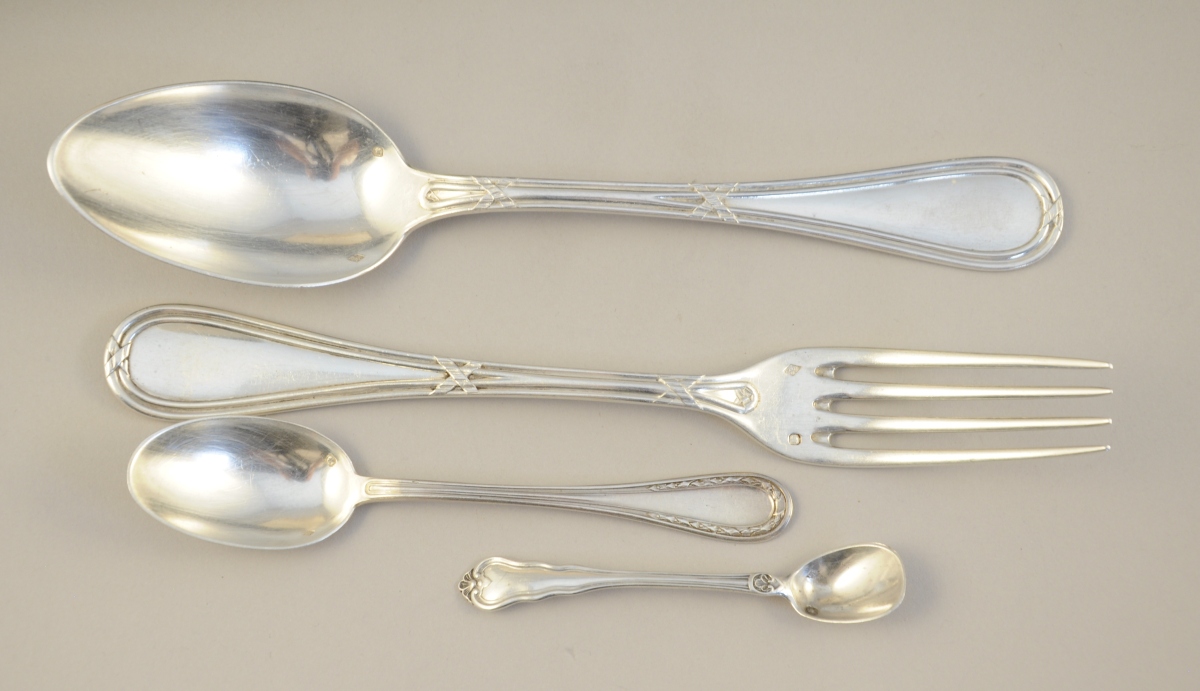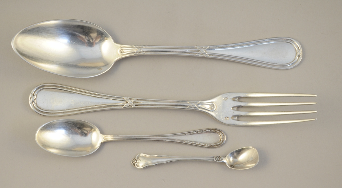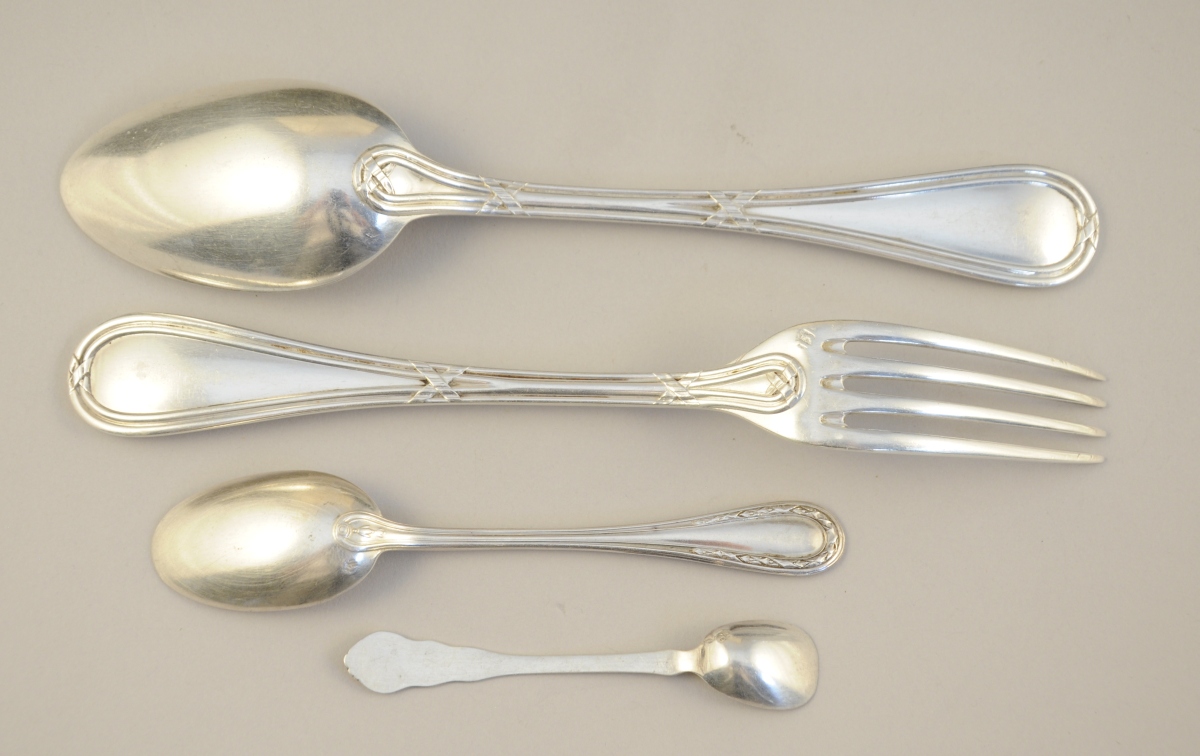Suite de 12 COUVERTS en argent ornés de joncs rubannés.