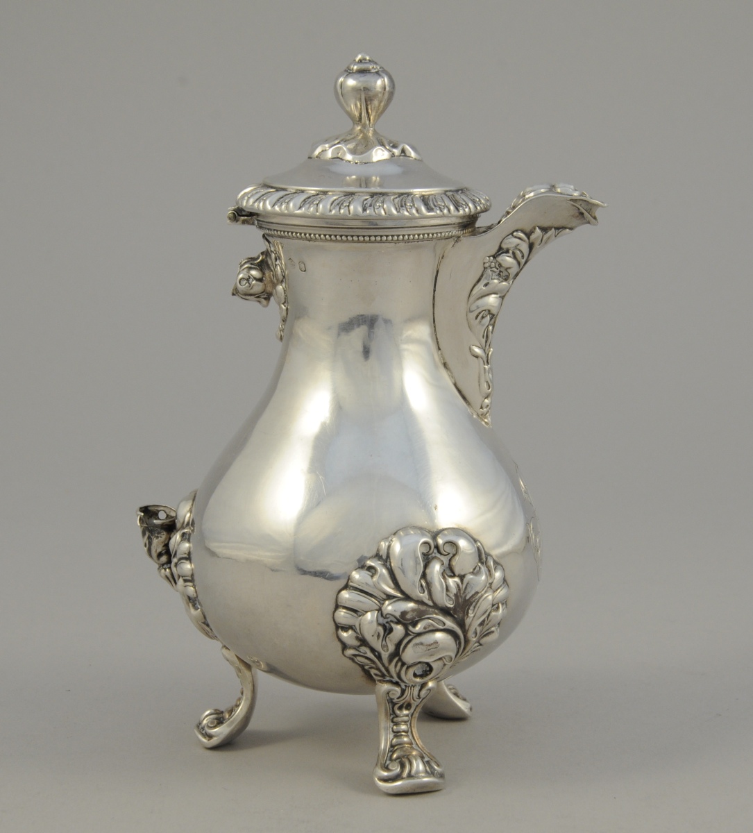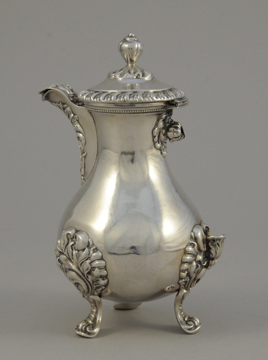 - VERSEUSE de forme balustre à large panse monogrammée "AB". Riche décor de feuillages stylisés. Piètement tripode. Poinçon Minerve, seconde moitié du XIXe.