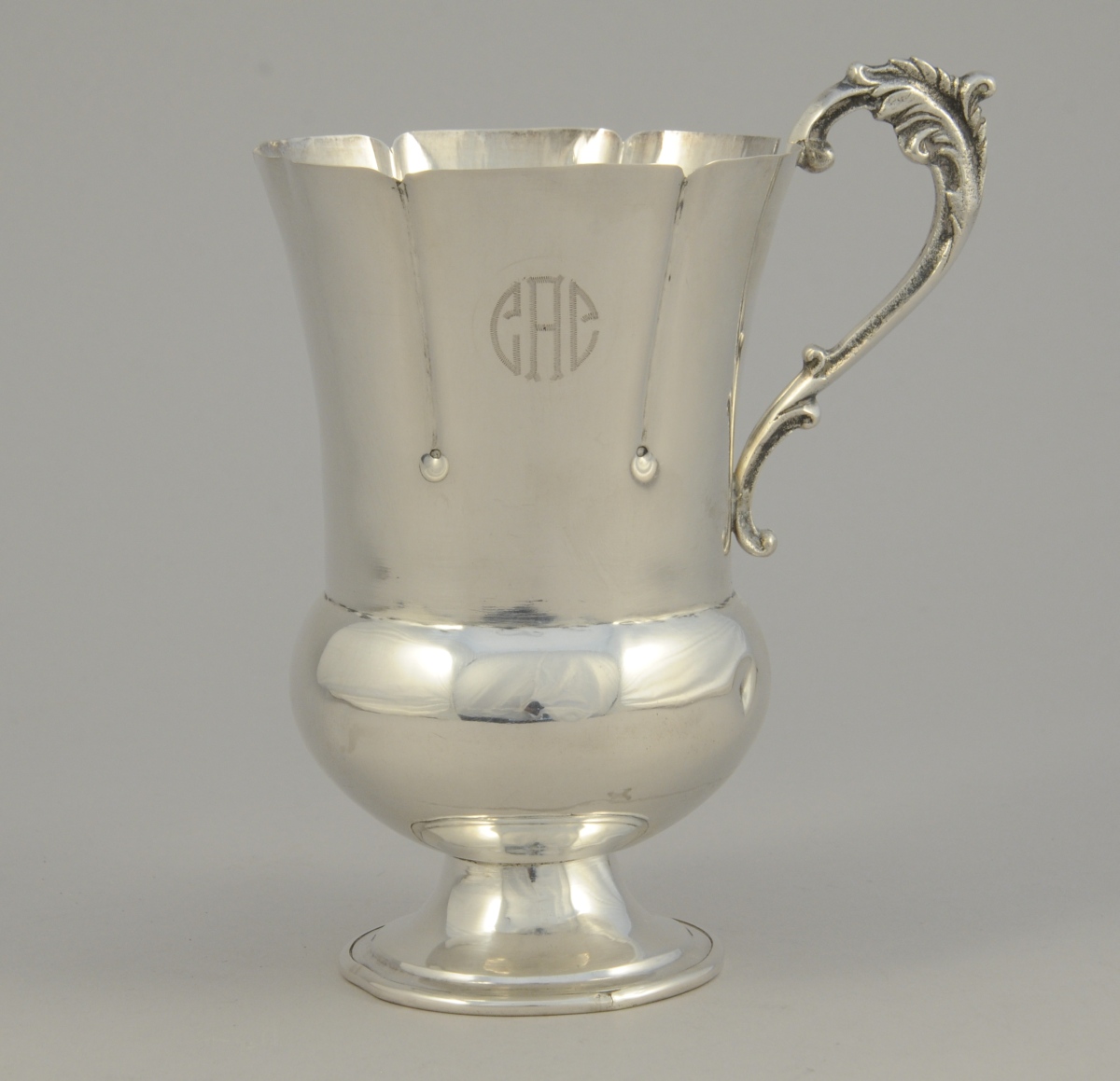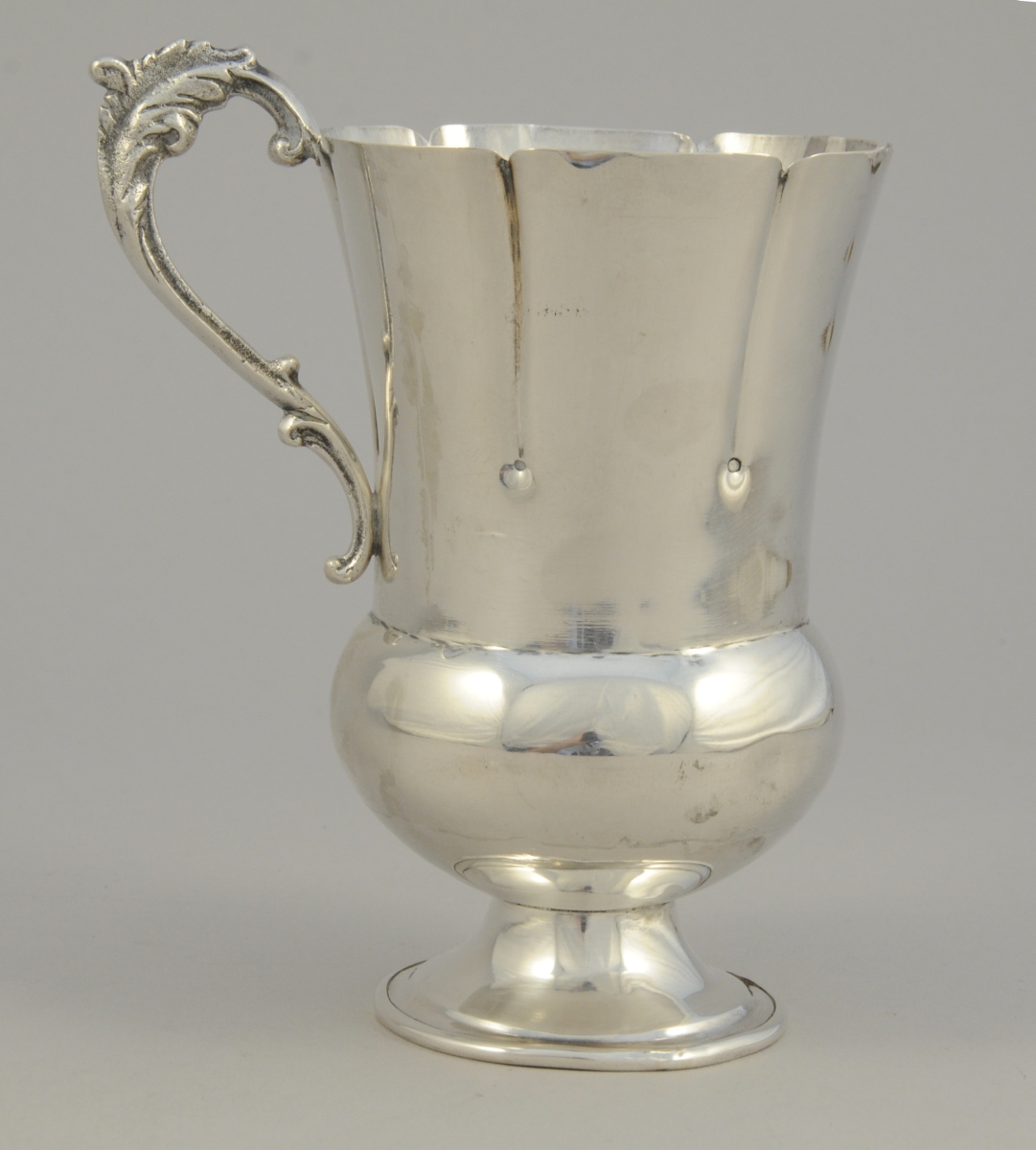 - CORPS de TIMBALE dite TULIPE marqué "J * RABUSSEAU *". Poinçon de charge de la juridiction de Tours: 1780-1789. Poinçon 1er Coq de Province. Haut. 7,5, Poids: 86 g. (manque le piédouche, en l'état)