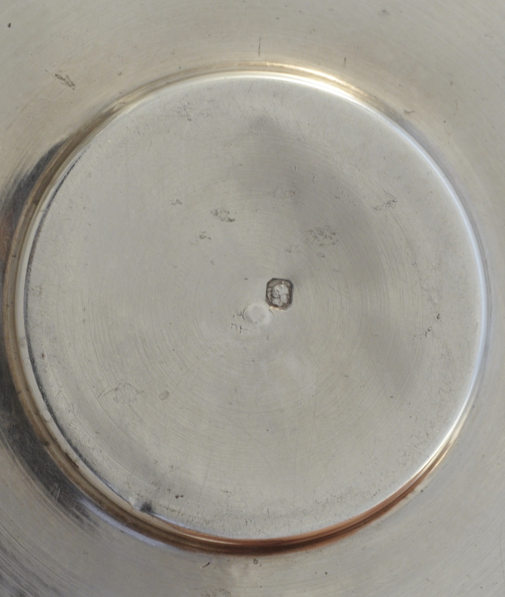 Tasse: Haut. 5,5, Diam. 5,5 cm. Sous-tasse: Diam. 11,5 cm. Poids: 90 g. (petits chocs)