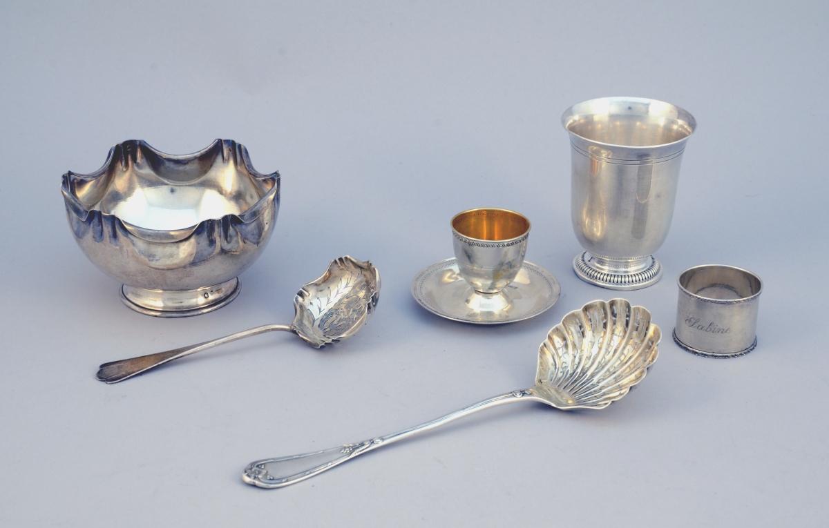 Poinçon Minerve, XXe. Haut. 7, Diam. 12 cm. Poids total: 155 g.
