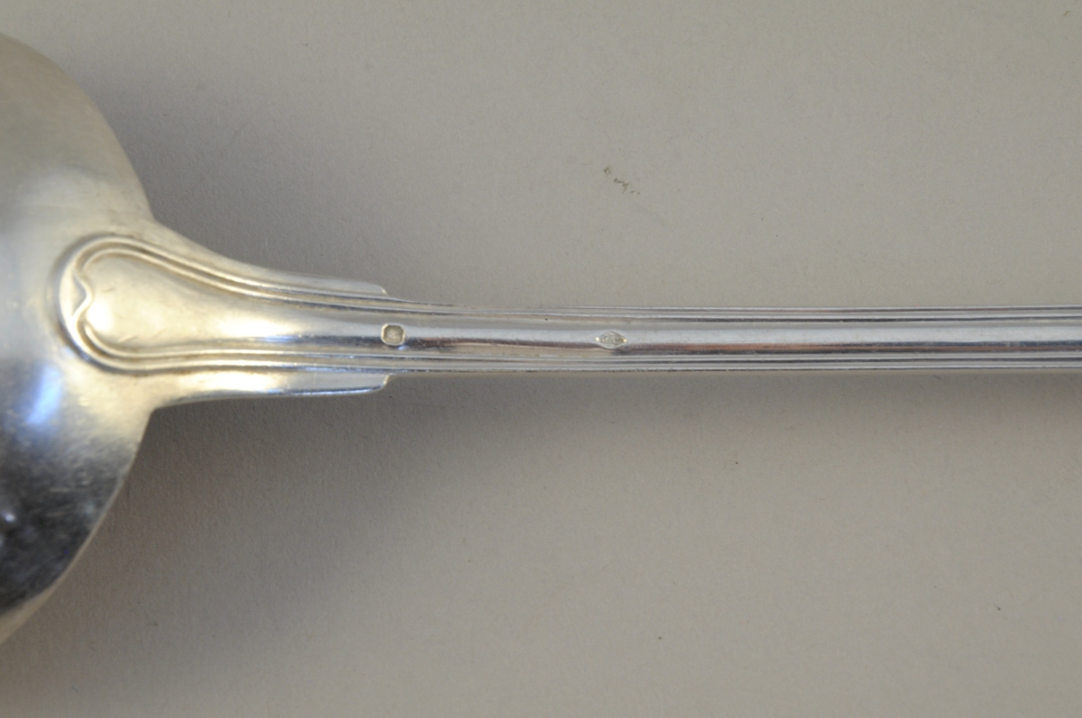 _COUVERT de collégien. Modèle filets-contours. La spatule marquée "B.R. 179". Poinçon Minerve, XIXe. Poids: 115 g.