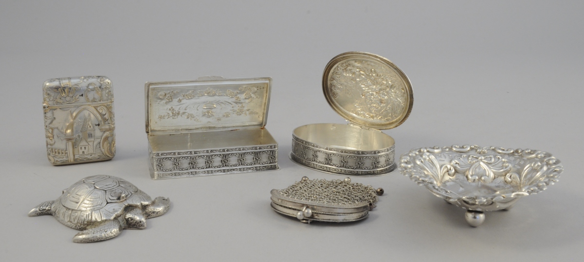 OBJETS DE VITRINE en argent, 6 PIÈCES.