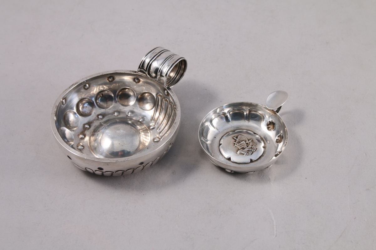 JOINT: - TASTEVIN en argent godroné, prise retournée. Poinçon Minerve.