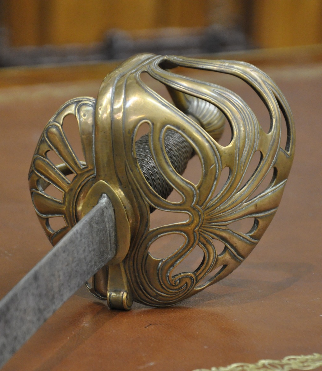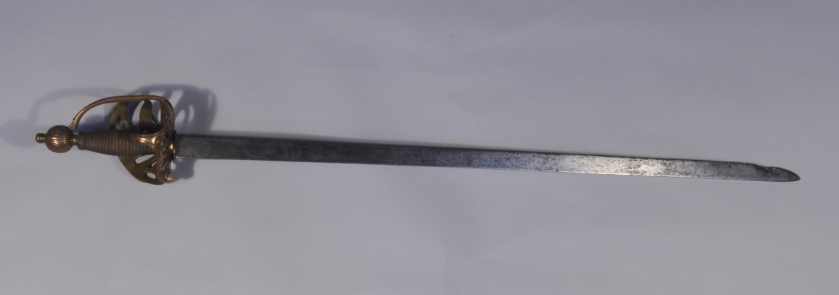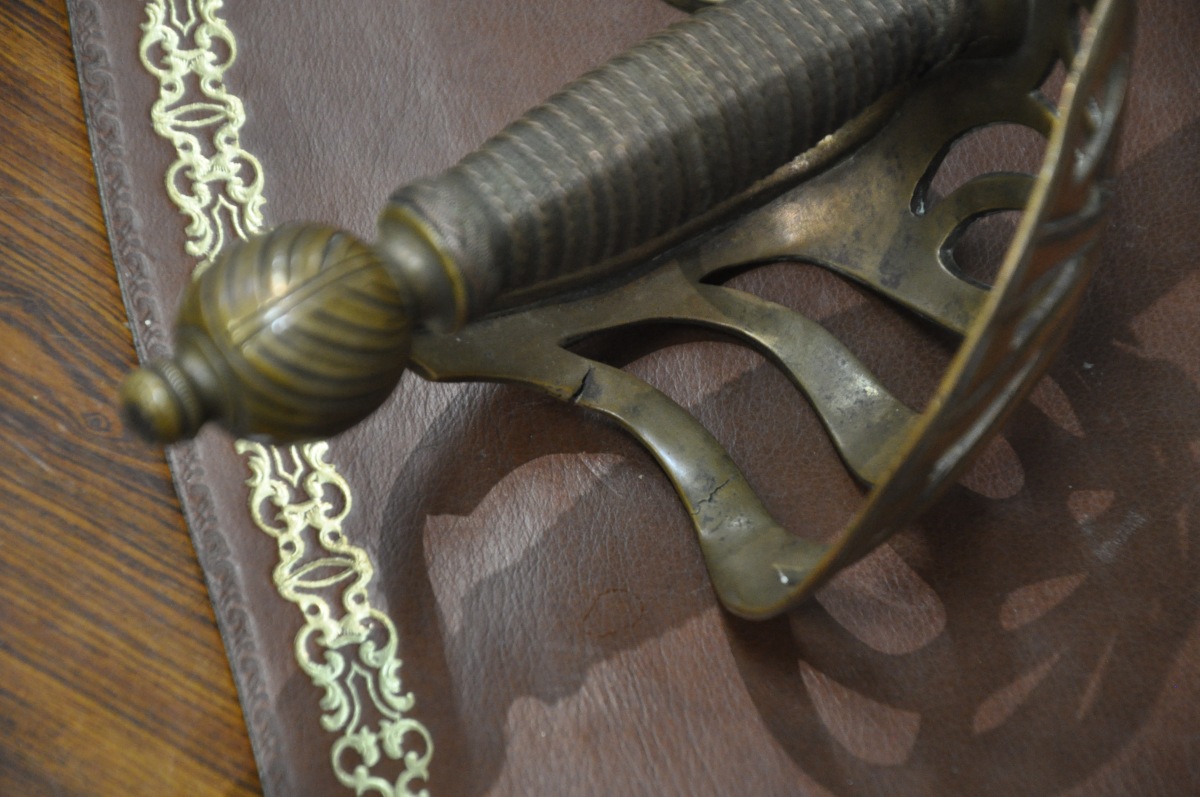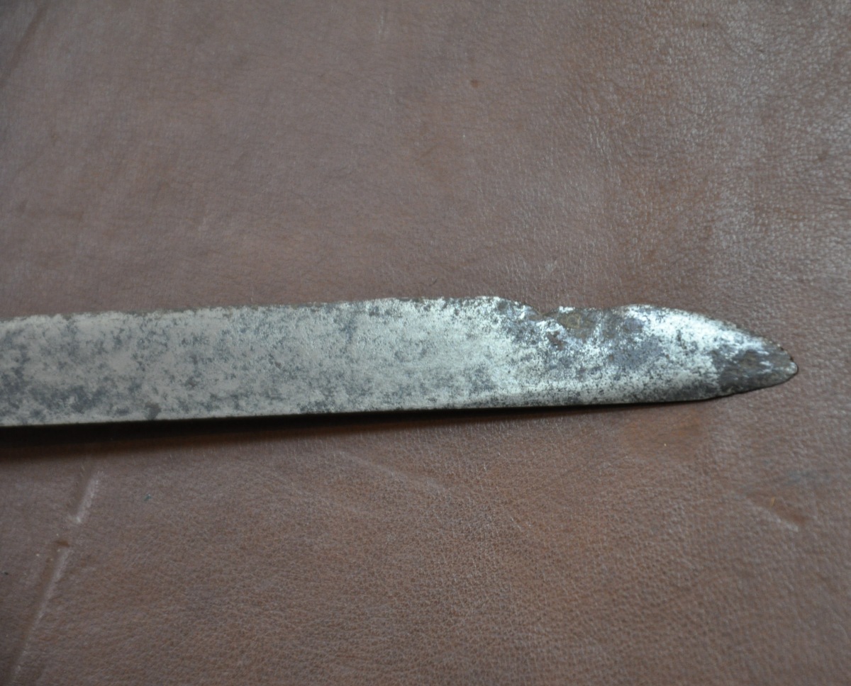 Long. totale 93,5, Long. de la lame: 77 cm. (lame oxydée, une branche fendue)