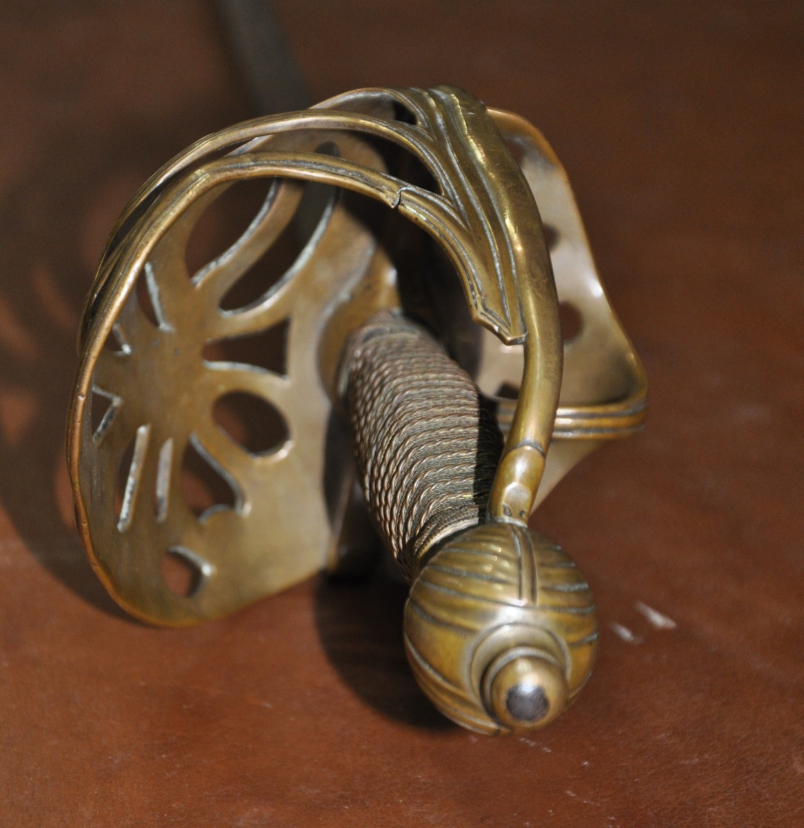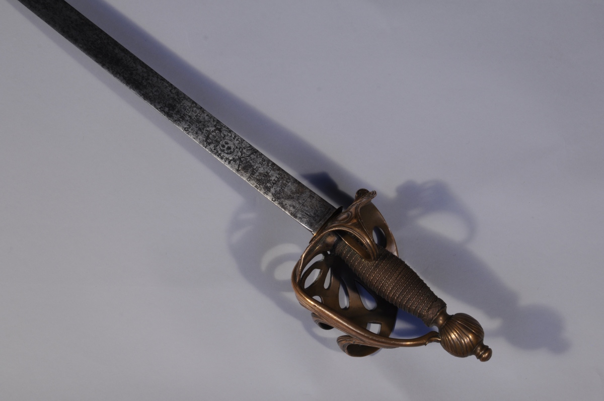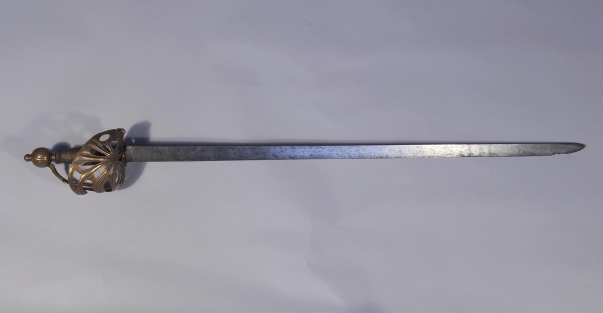 Long. totale 93,5, Long. de la lame: 77 cm. (lame oxydée, une branche fendue)