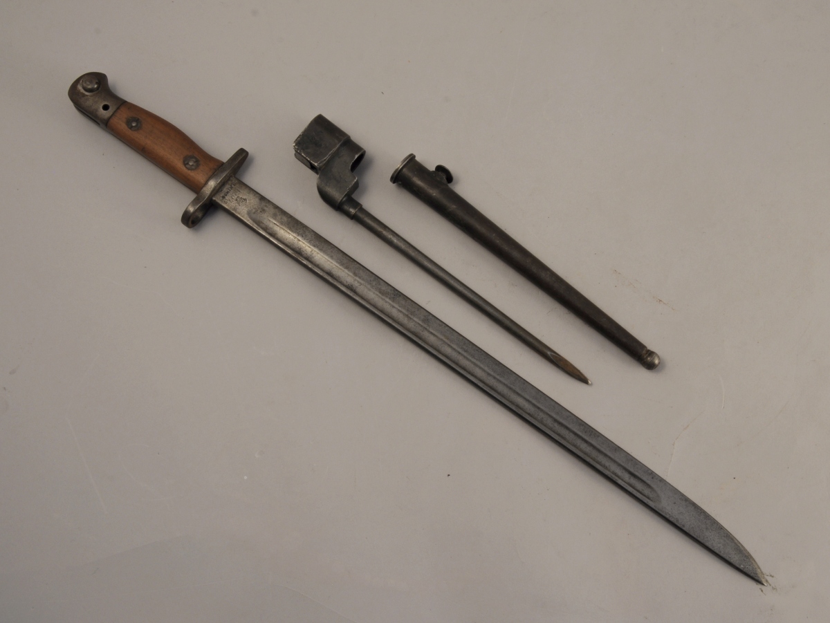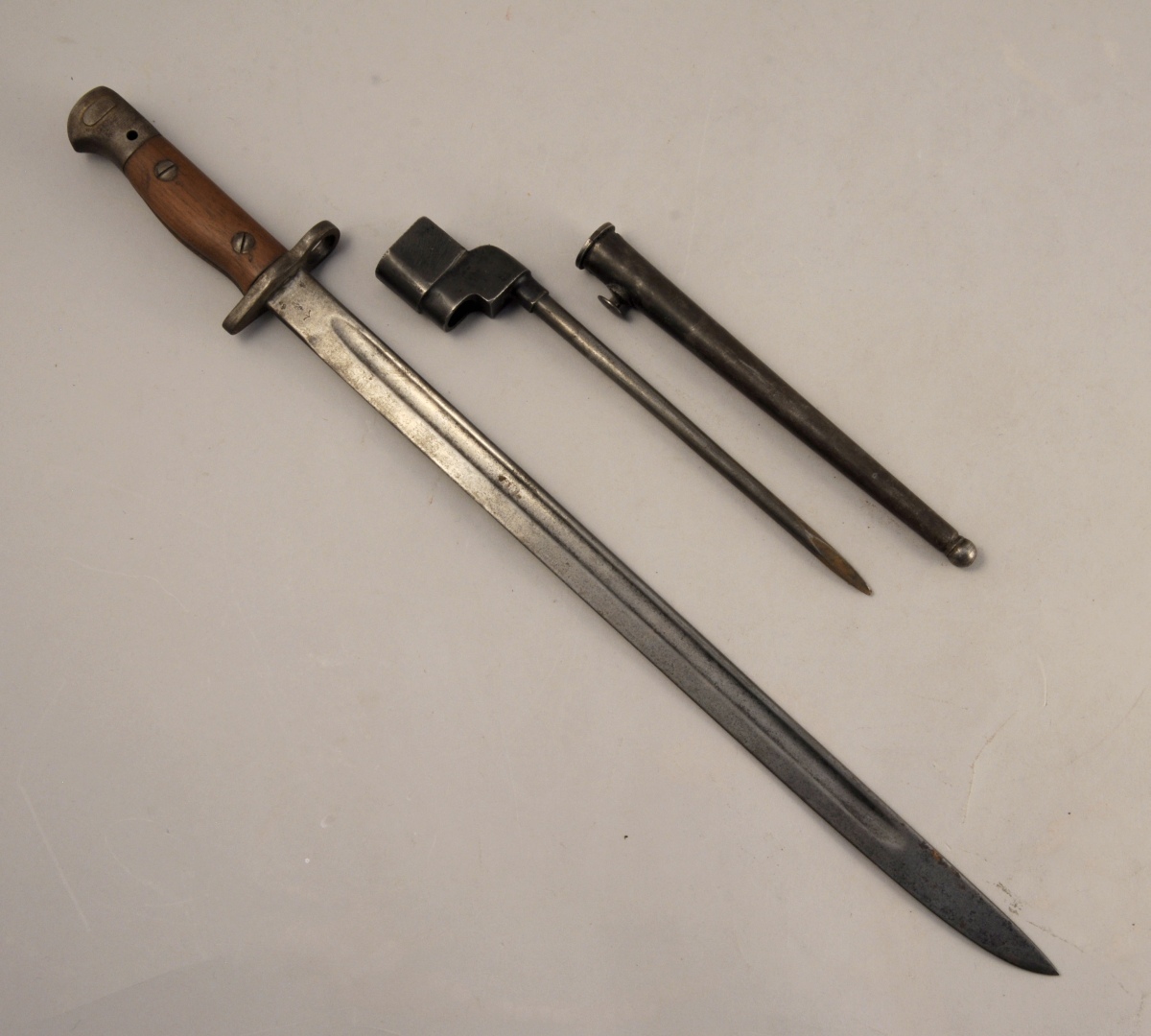 - BAÏONNETTE modèle 1907 modifié 1916. Avec marquages. S.F. Long. totale: 55 cm.