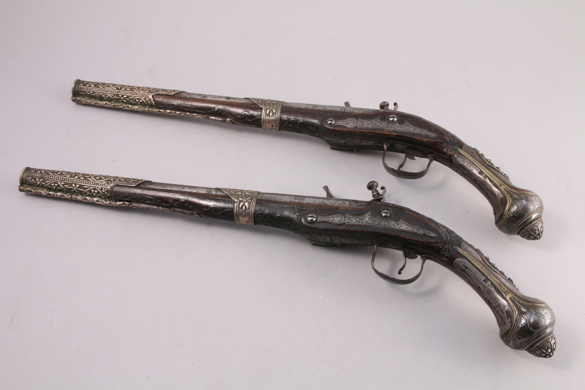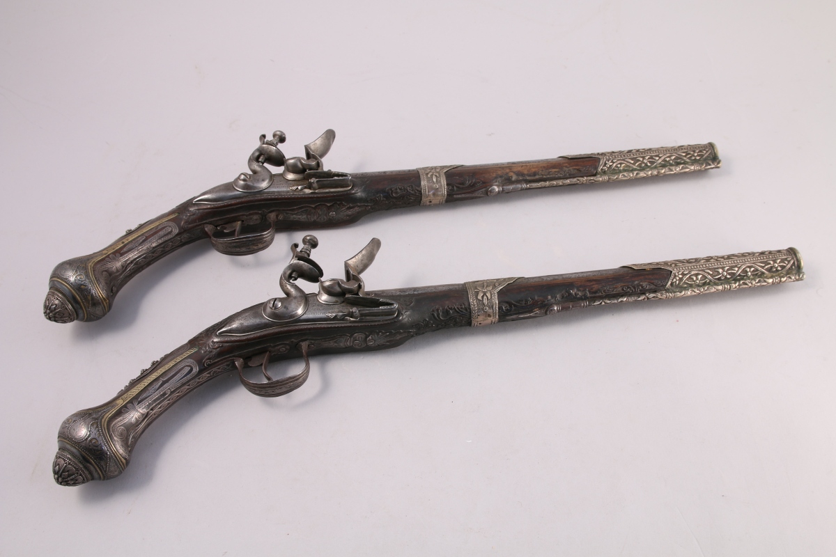 LONGUE PAIRE DE PISTOLETS OTTOMANS TURCS.