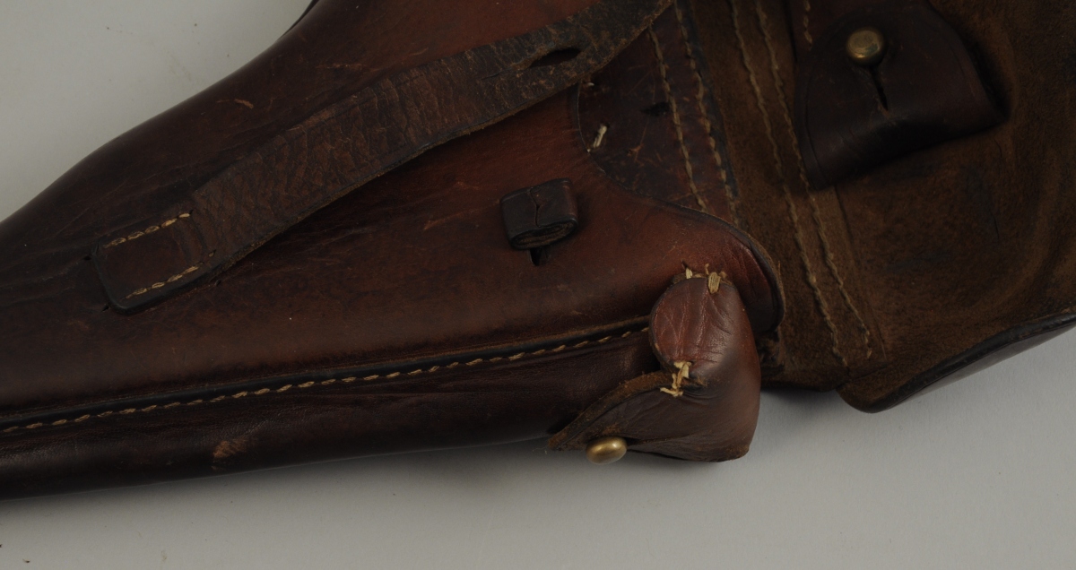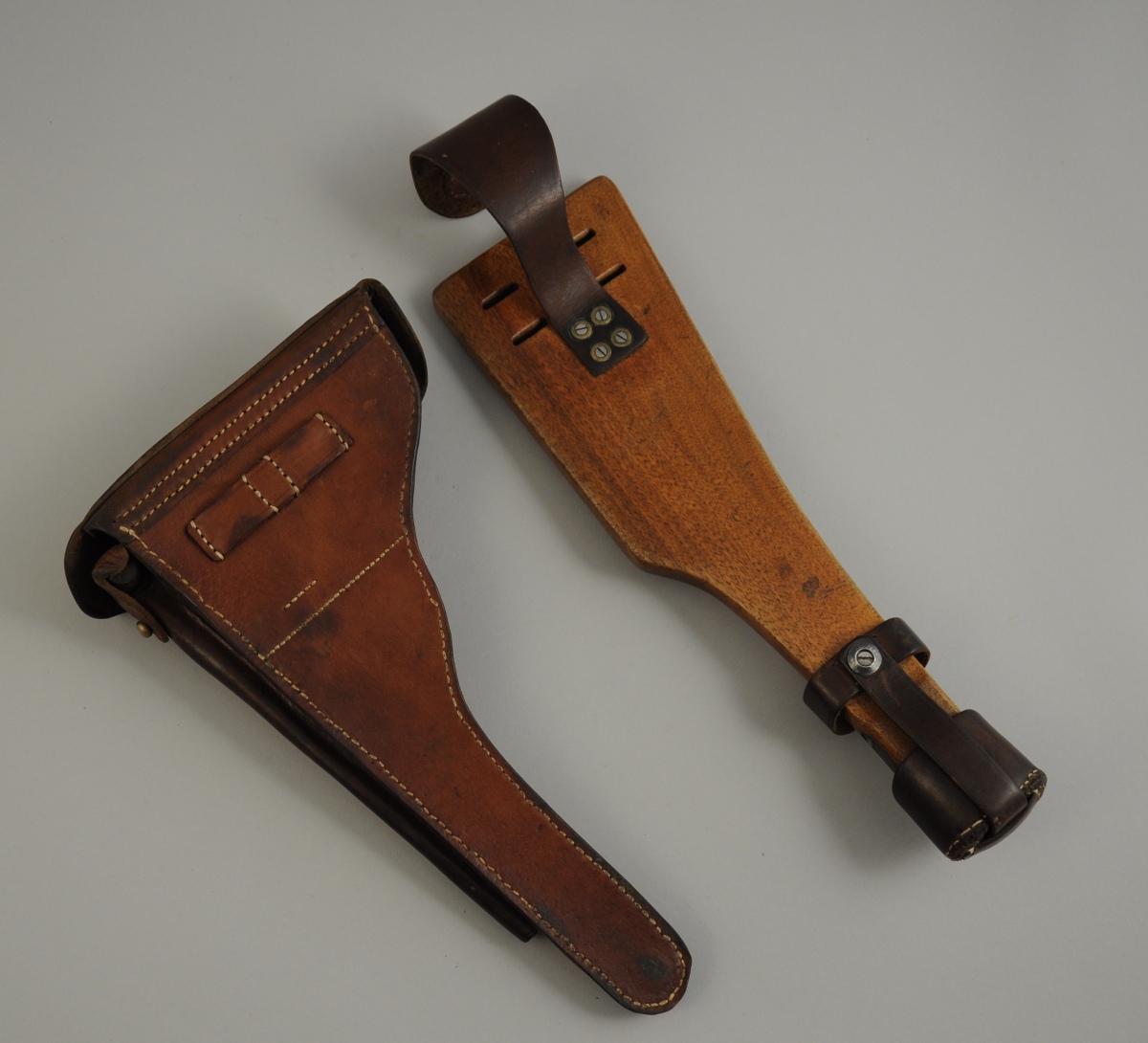 ÉTUI de LUGER P08 ARTILLERIE avec crosse en bois, clef et pièce de nettoyage.