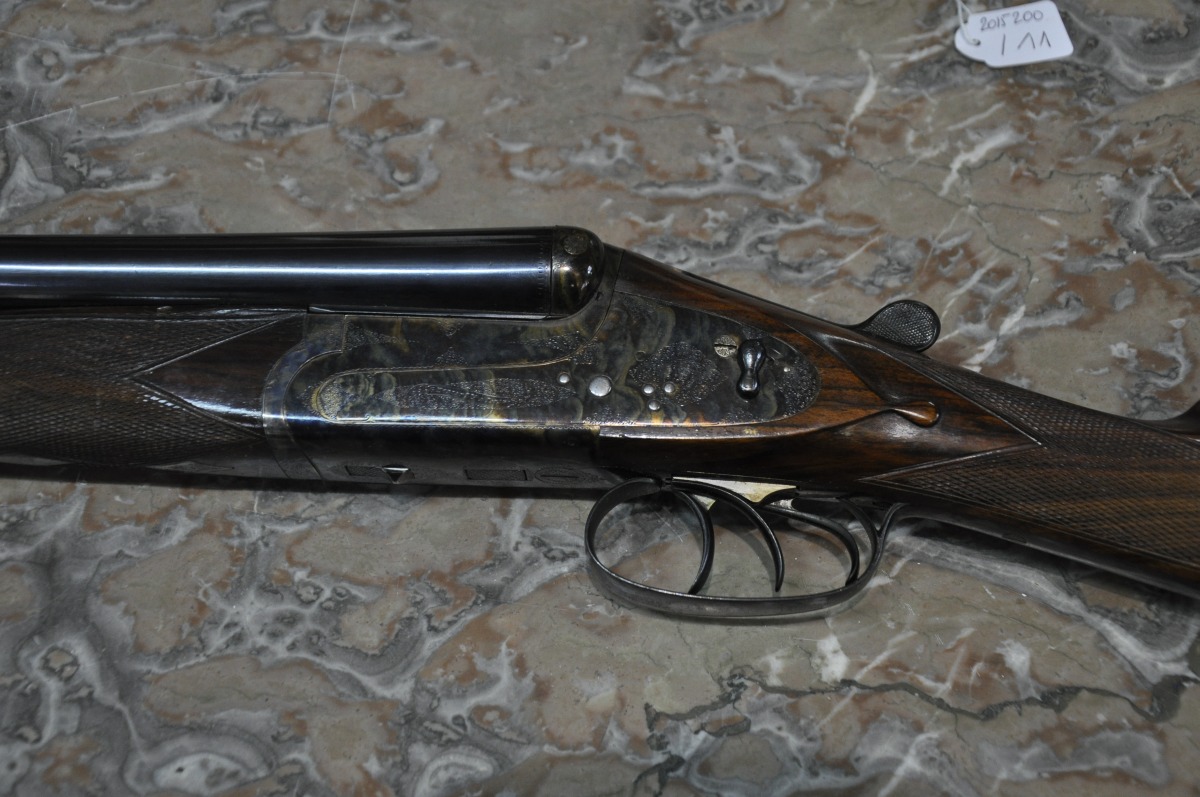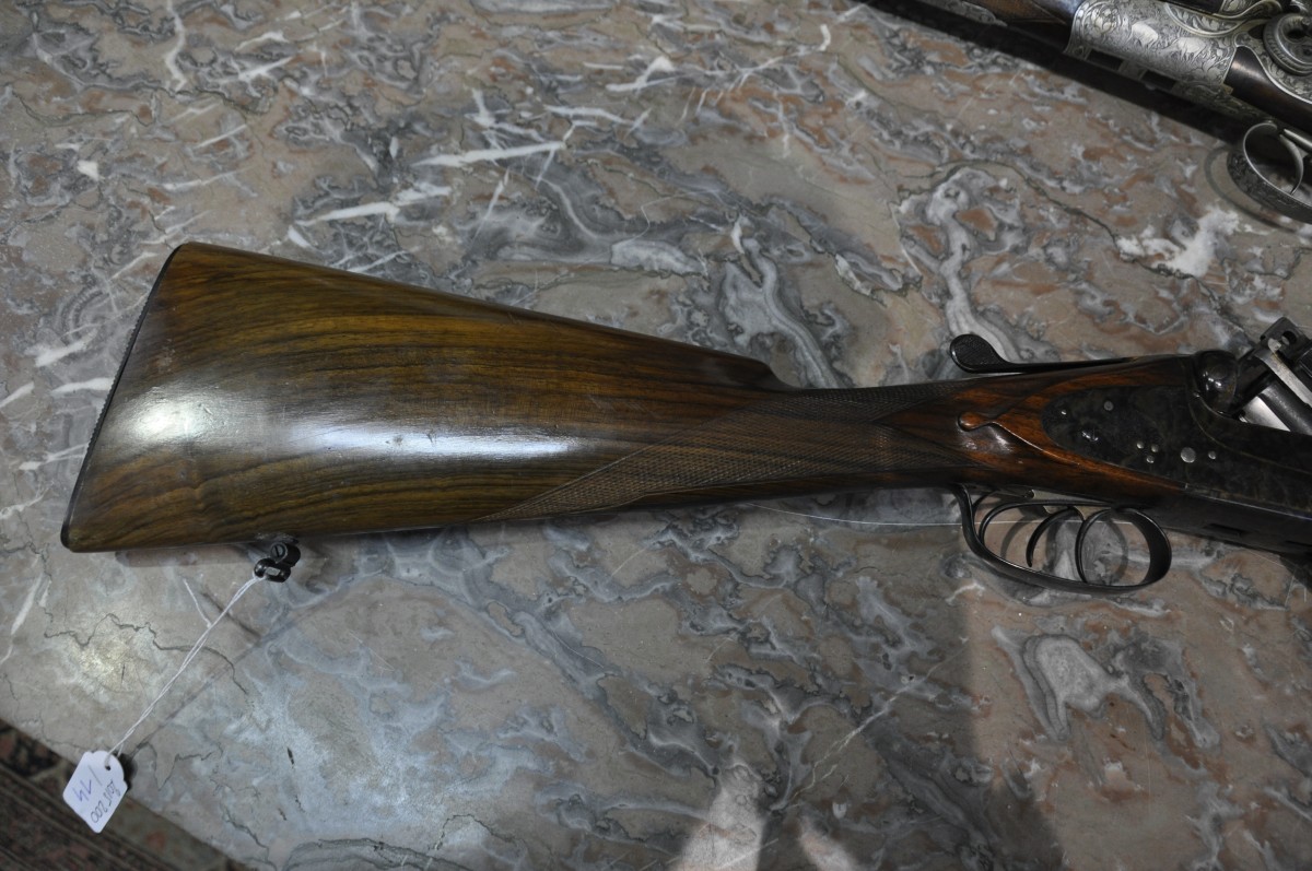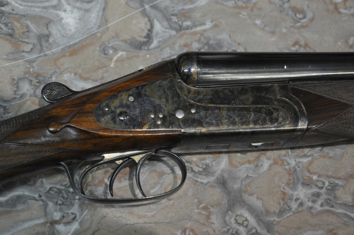 Contre-Platines signées et canons "G. Morian Bté à Paris / avenue de l'Opéra 36". Canons belges, poinçons du banc d'épreuve de Liège.