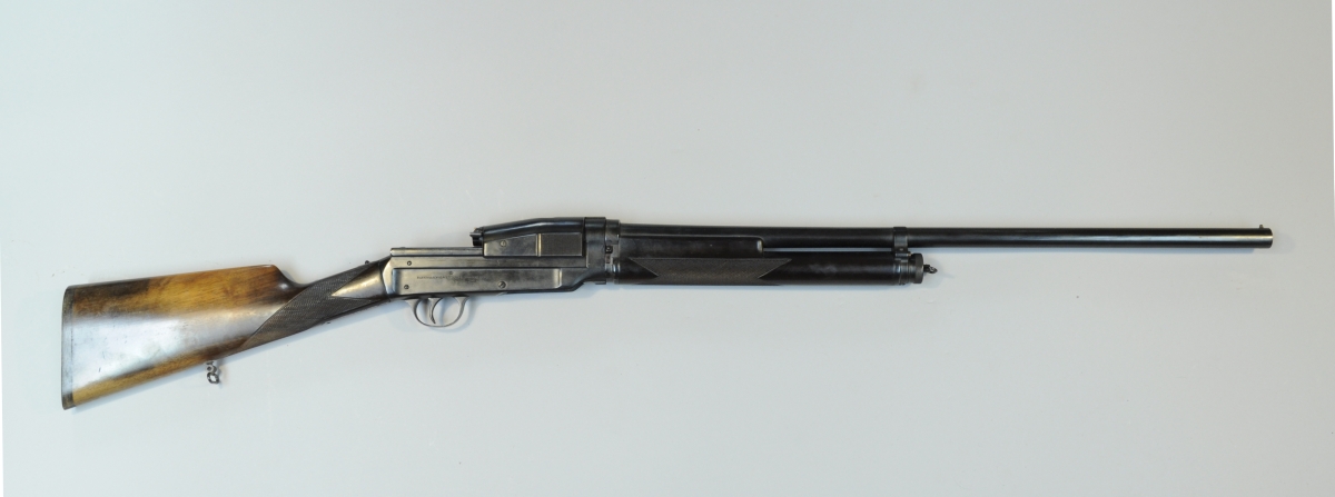 FUSIL DE CHASSE SEMI-AUTOMATIQUE HAANDVAABENVÆRKSTEDERNE KJØBENHAVN, système SJÖGREN, trois coups. Ccalibre 12.