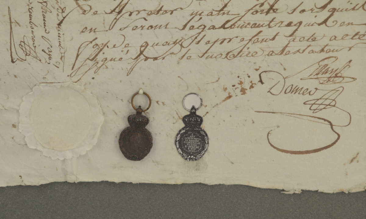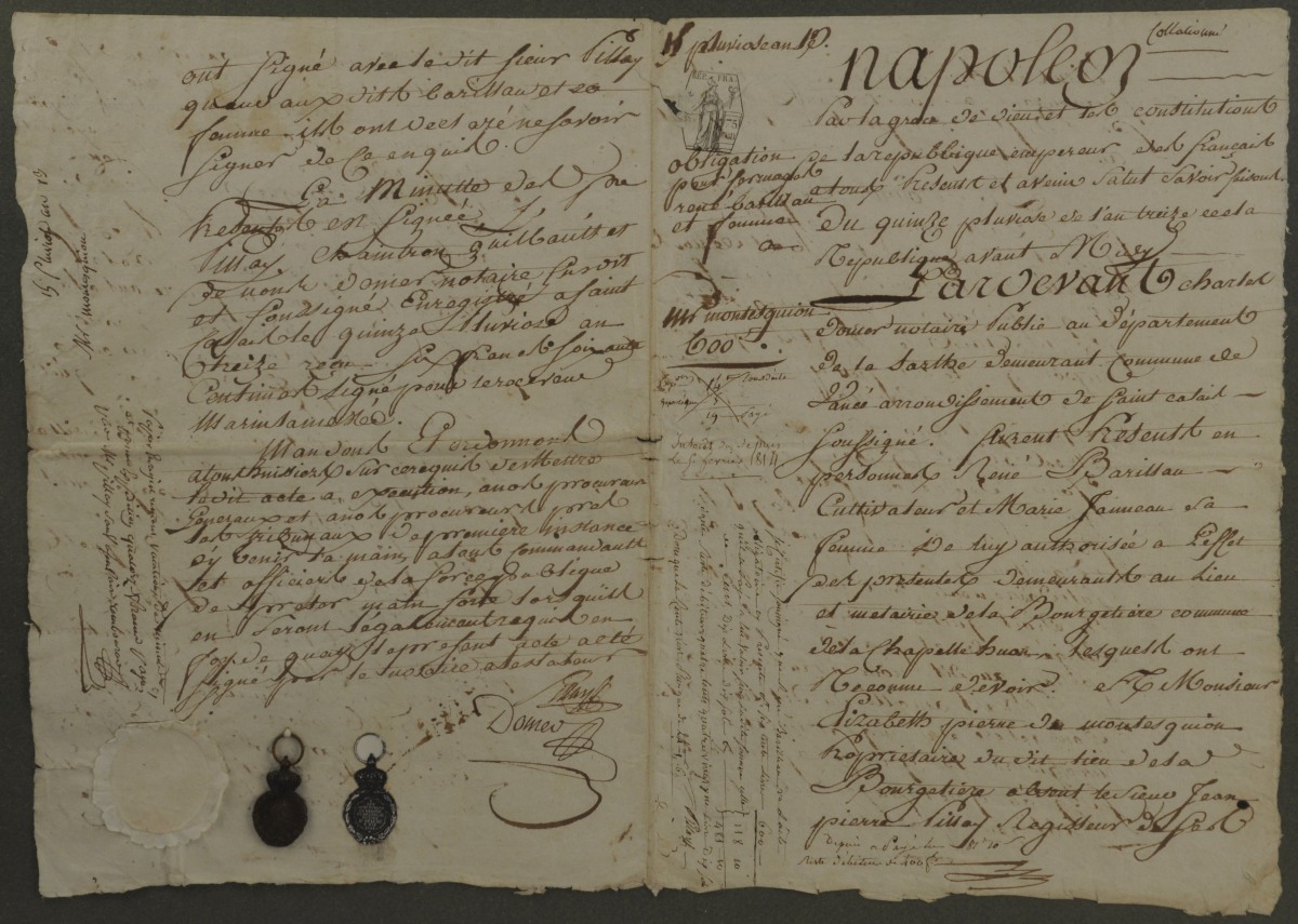 Présenté sous verre sur un document administratif manuscrit daté du 15 pluviose an 13 (4 février 1805). 29 x 42 cm.
