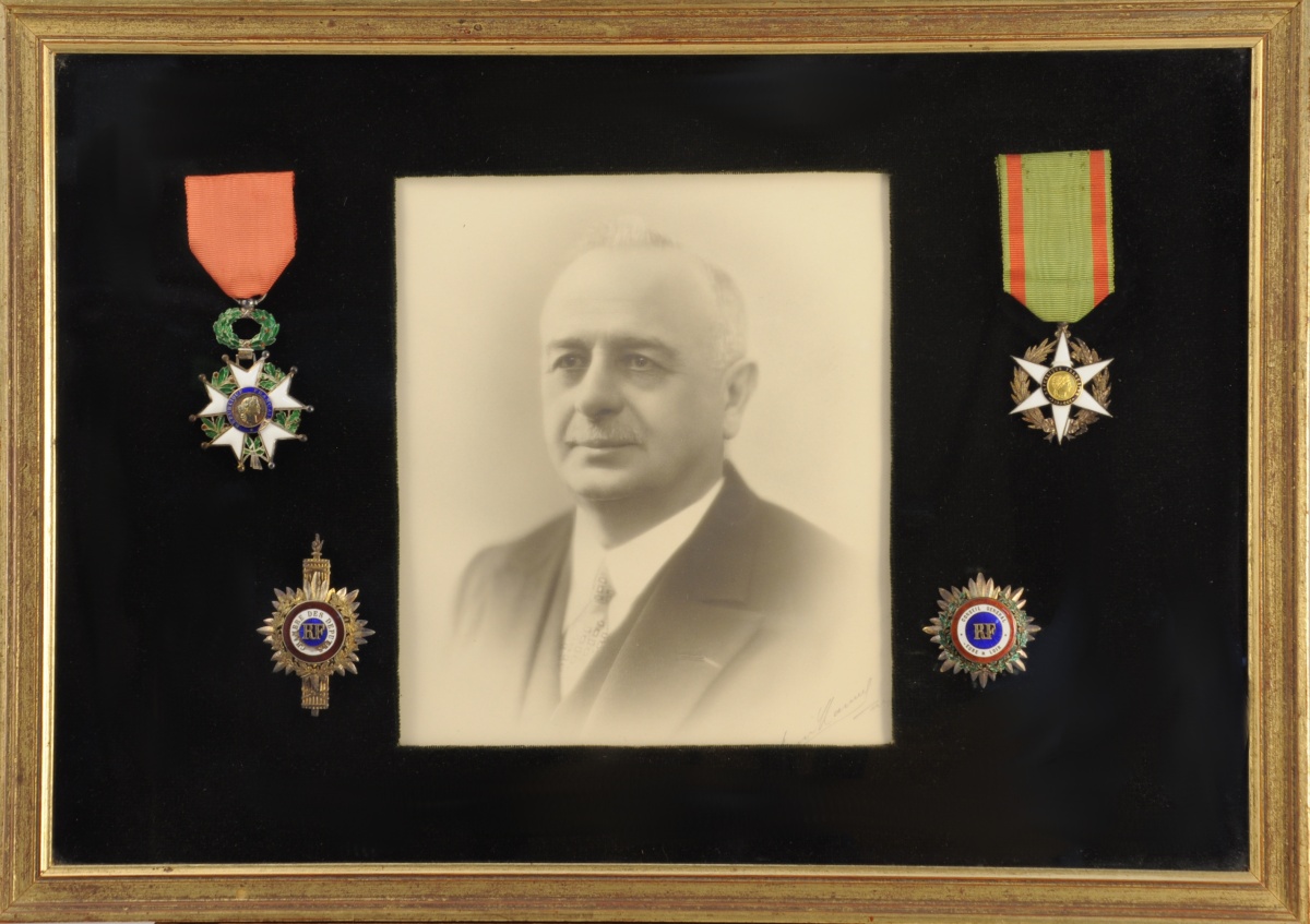 IVe République - QUATRE DÉCORATIONS encadrant la photographie de leur récipiendaire: