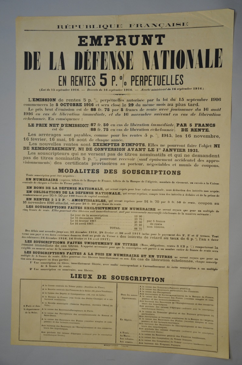 - "Emprunt de la Défense Nationale. En rente 5 % Perpétuelle".