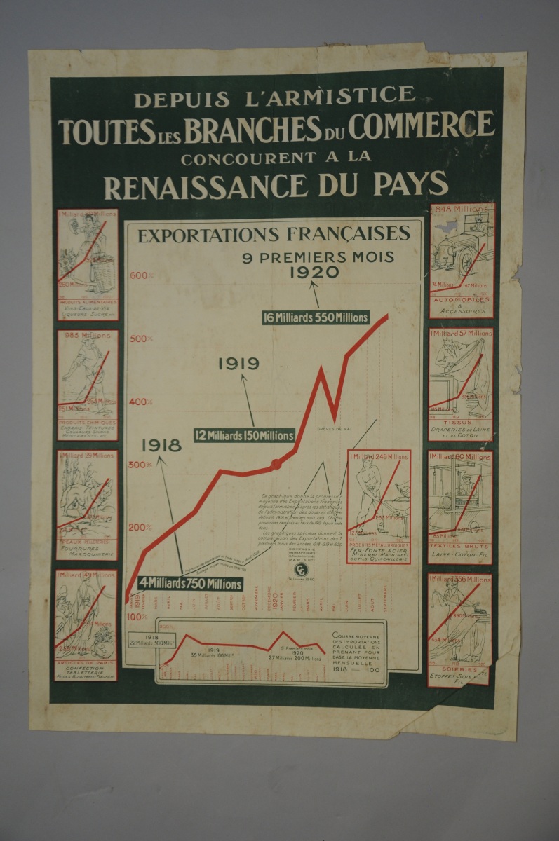 - "Depuis l'Armistice toutes les Branches du Commerce concourent à la Renaissance du Pays". 75 x 54 cm (mauvais état).