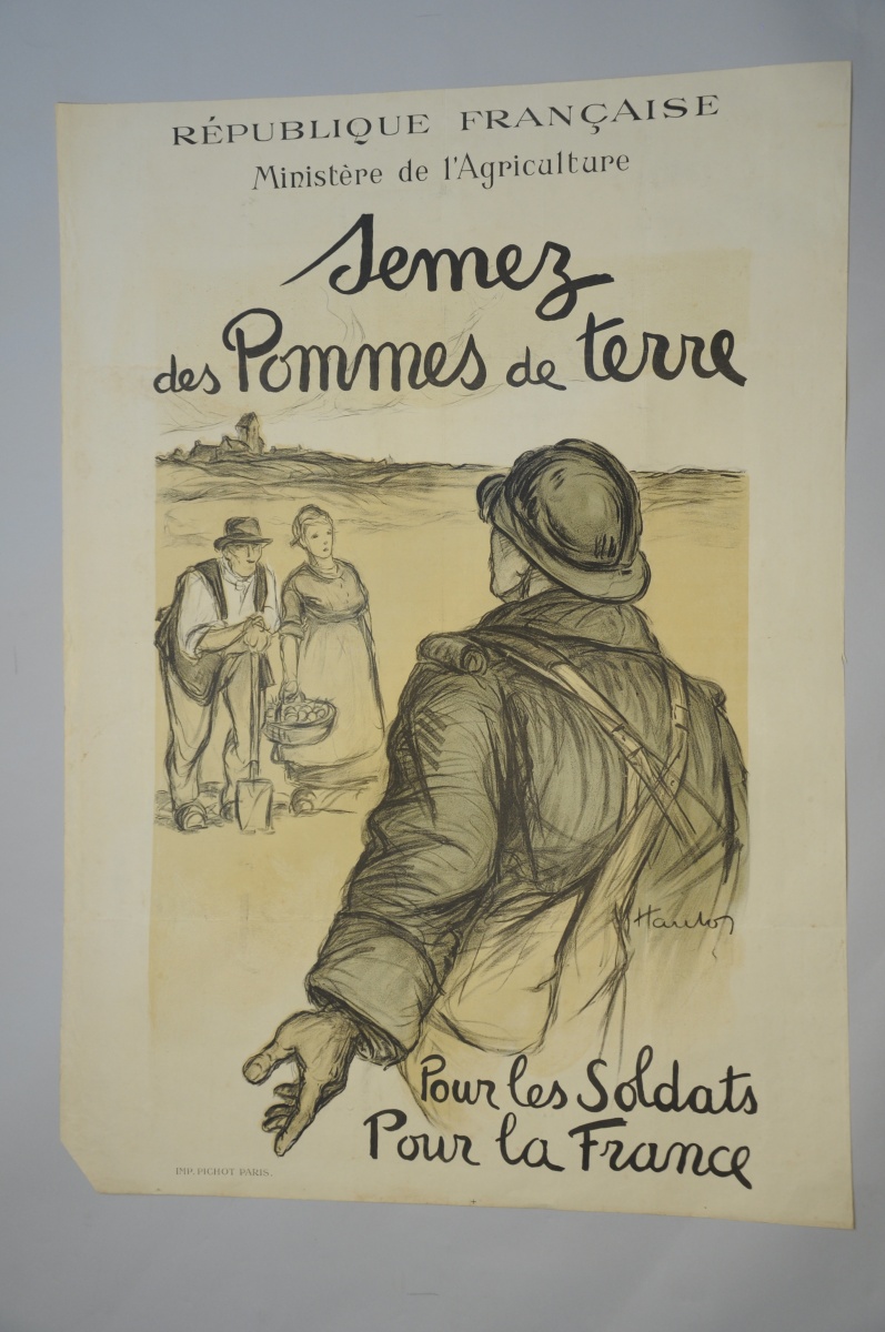 "Semez des Pommes de terre, Pour les Soldats, pour la France - Ministère de l'Agriculture" Affiche imprimée par Pichot - Paris, 1915. 110 x 70 cm (bon état).
