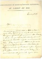 L.A.S. à entête " Administration du muséum d'histoire naturelle, Au Jardin du Roi ", écrite de Paris et datée du 30 décembre 1818, 1 page ½ in-8. Est évoqué le projet d'achat de deux éléphants.
