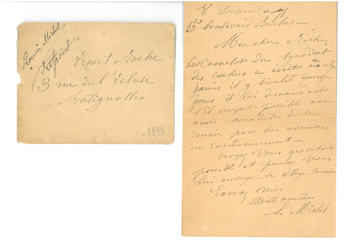 ". [de retour depuis le 13 novembre 1895 de son exil de Londres]. - L.A.S., Paris, 55 boulevard Barbès, 8 décembre 1895, adressée à Ernest ROCHE (1850-1917), ouvrier graveur, blanquiste et socialiste, secrétaire de la chambre syndicale des mécaniciens, 1 page in-8 avec enveloppe: " Mon cher Roche, Camelot du syndicat des cochers a écrit au citoyen Jaurès il y a bientôt quinze jours il lui demandait s'il croyait possible aux amis socialistes de se réunir pour lui avancer un cautionnement