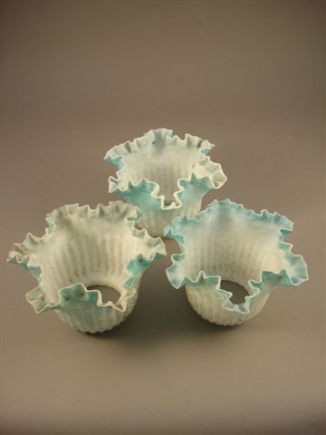 ENSEMBLE DE VERRERIES. Il comprend 3 globes de forme tulipe pour lampes à pétrole, 9 petits globes en opaline et verre opalescent.