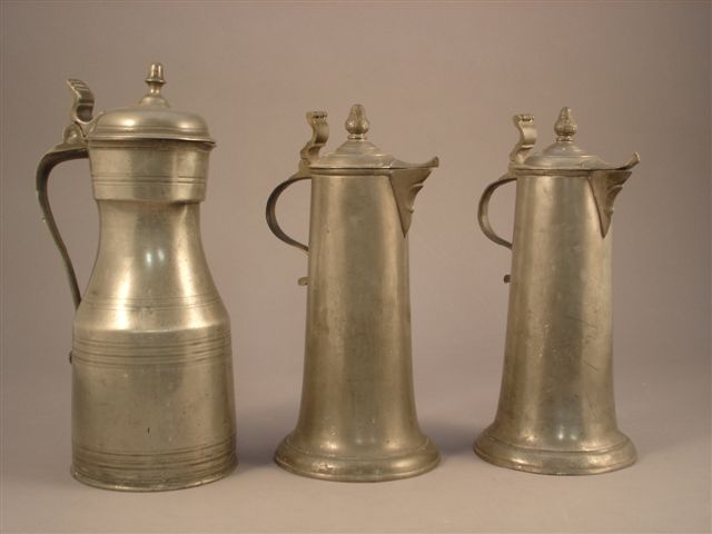 TROIS PICHETS en ÉTAIN, anses en volute.